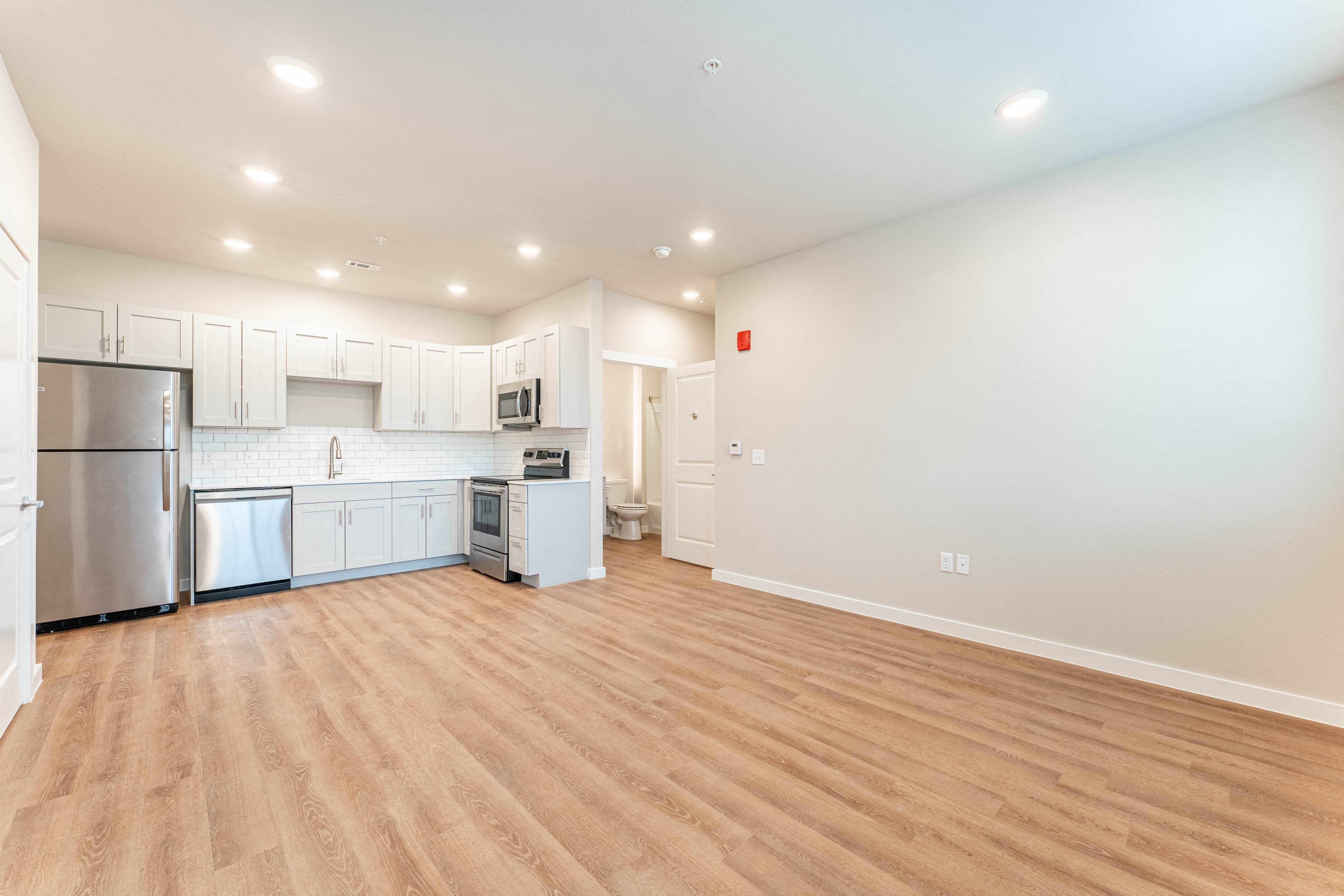 Our pet-friendly community provides everything that you need to live the life that you deserve. From the fitness center to the business center and swimming pool, every shared space has been designed to evoke a strong sense of community as well as provide an escape from the stress of day-to-day life. So leave all your worries at the door because the comforts and convenience of our community spaces extend to all our one or two-bedroom apartments for rent in Lowell. Each apartment home has been equipped with modern amenities such as an in-home full-size washer and dryer, backlit vanity, and hardwood floors to create that warm feeling of an inviting home.