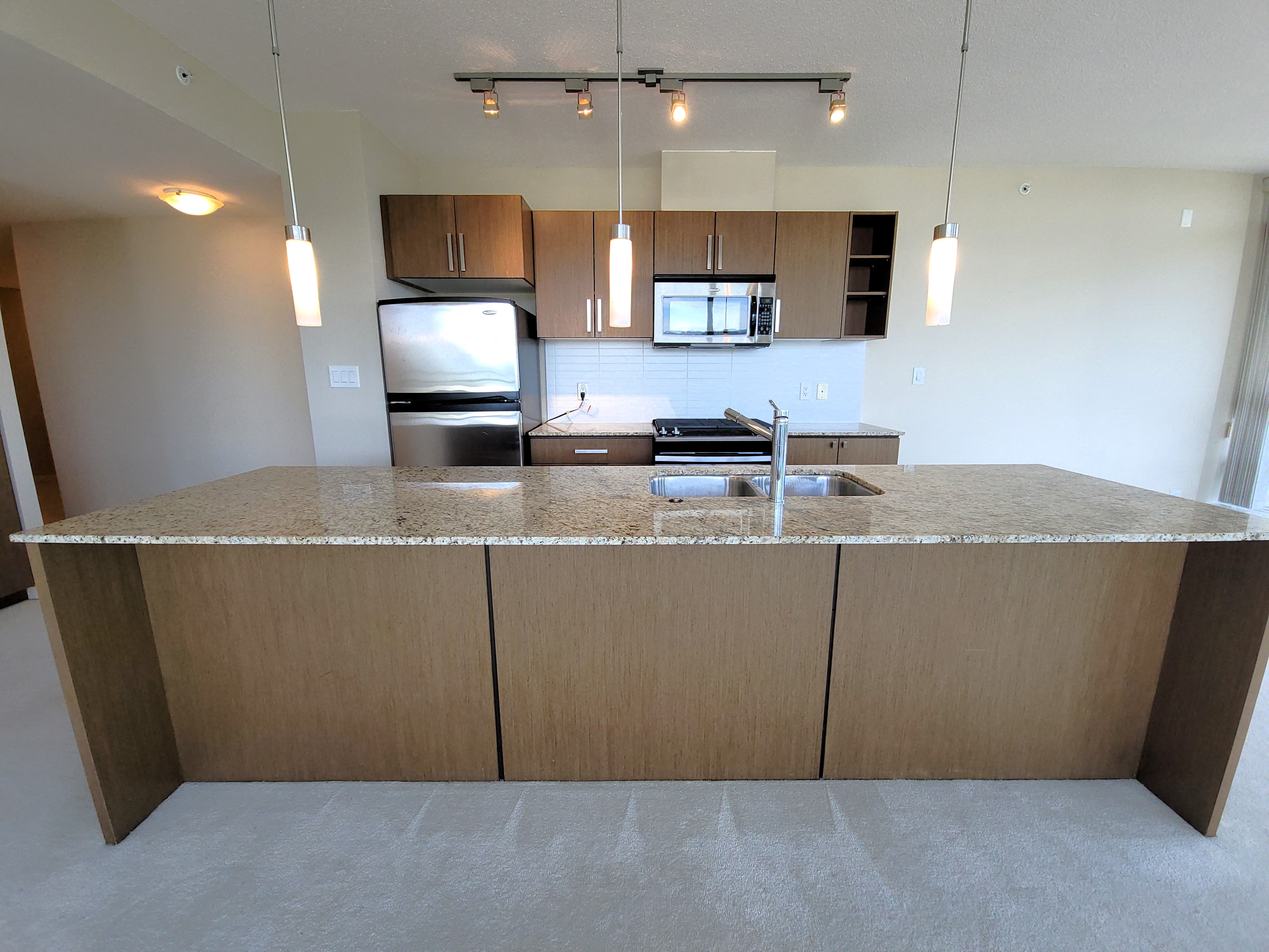Kitchen: Stainless steel appliances, gas cooktop and granite counters