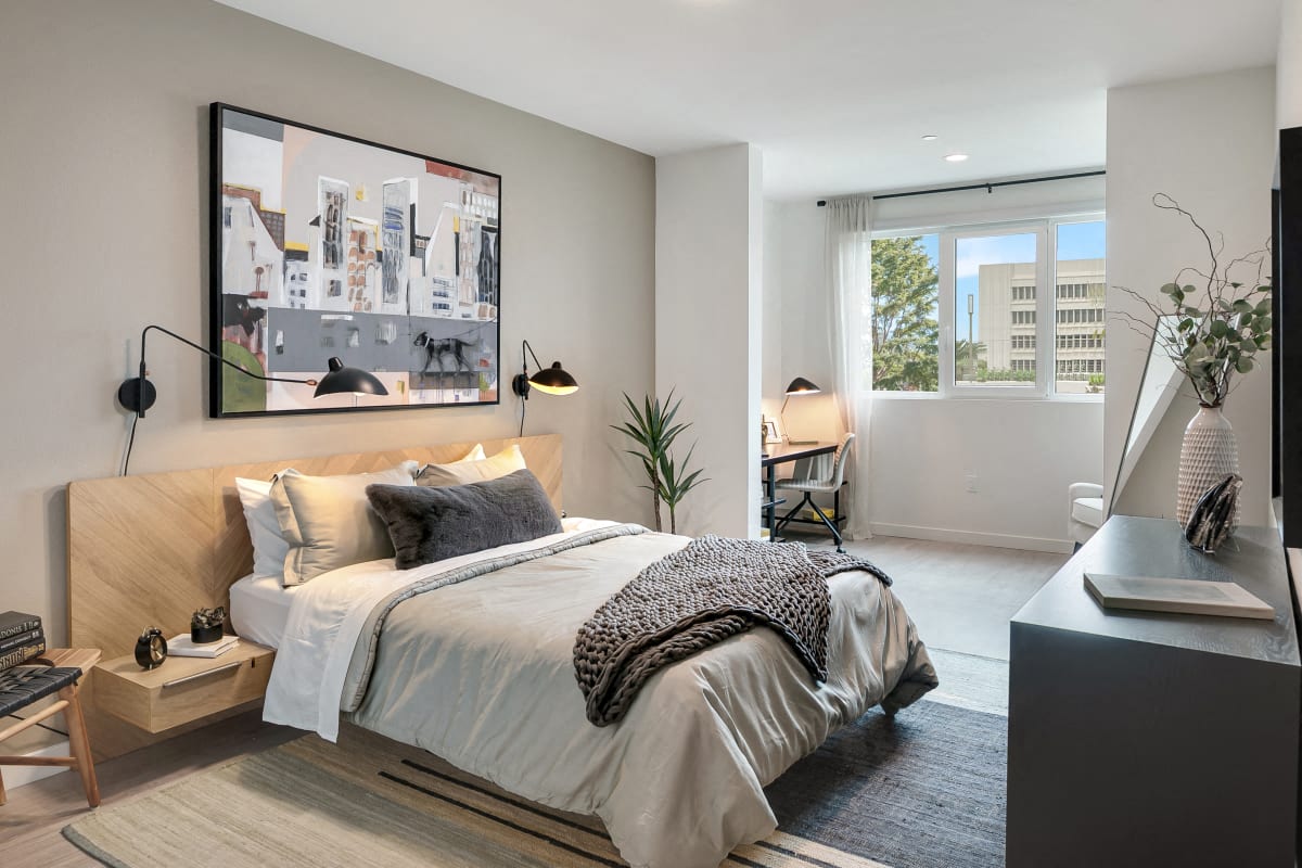 Studio, 1, 2, & 3 Bedroom Apartments in Inglewood Astra features brand-new luxury apartments, offering studios, one, two, and three bedrooms. Enjoy open concept designs, modern finishes, and luxury resort living. Read MoreRead More + Luxury Apartments in Inglewood Whether you value space, style, or functionality, you will find our rich selection of floor plans more than ideal. What ties all these different layouts together is a sensational collection of features. Each of Astra’s luxury apartments offers chef-worthy kitchens with GE stainless-steel appliances, quartz countertops, undercabinet lights, and more. The bathrooms enjoy the same level of sophistication, with tiled walk-in showers or large soaking tubs. Full-sized stackable GE washers & dryers, smart thermostats, and electrical outlets with USB charging ports are also standard additions in every Astra home.