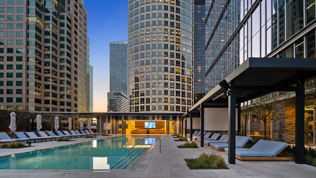 - Fitness Studio equipped with cardio machines, weights, on-demand and complimentary in-person classes