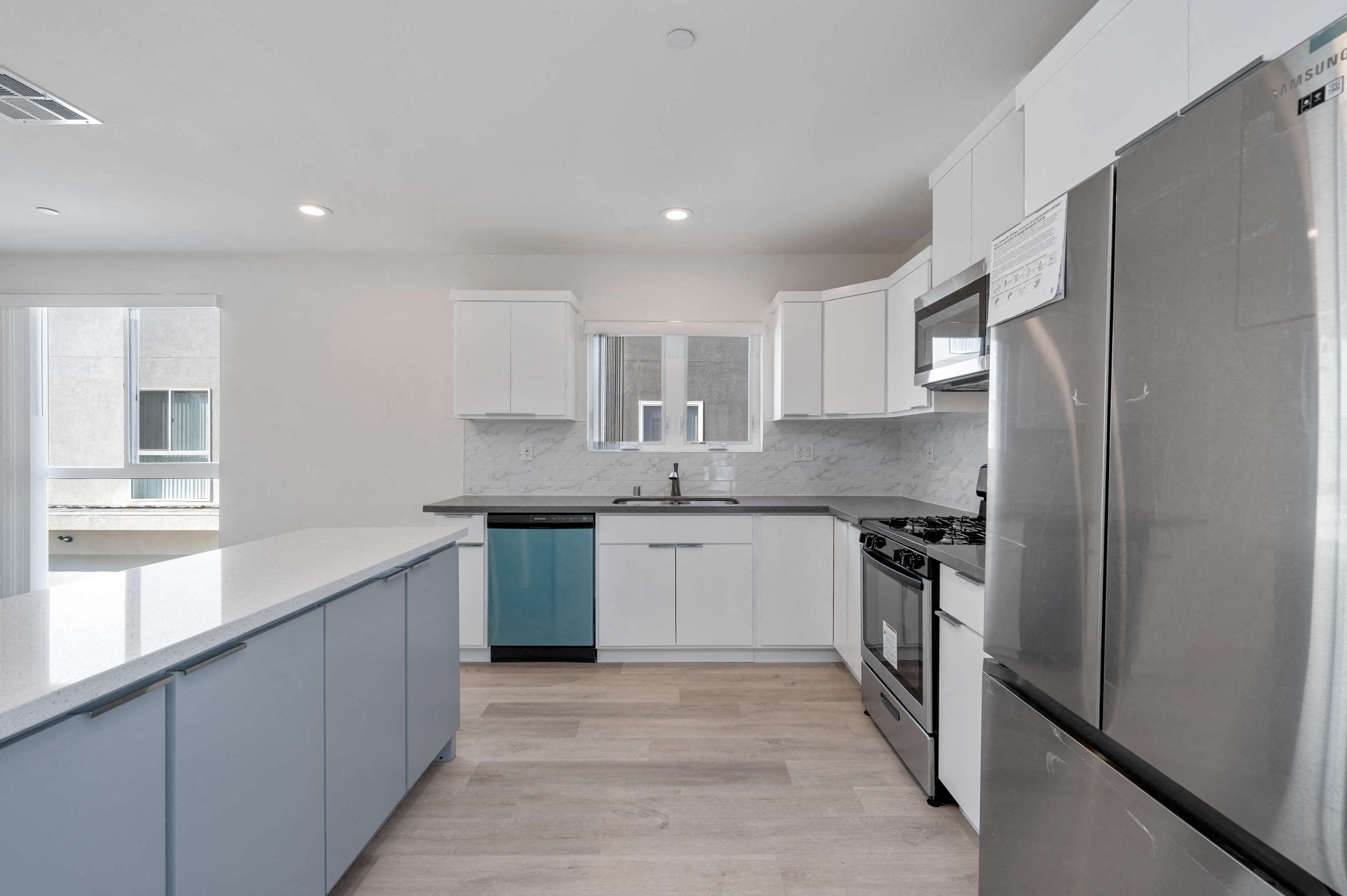 - all new stainless steel appliances + private, in-unit washerdryers. Modern kitchens with kitchen islands, large sinks, and tons of cabinet space. Hardwood floors. High ceilings. Central air and heat. Lots of closet space. Amazing lighting all throughout the unit as well