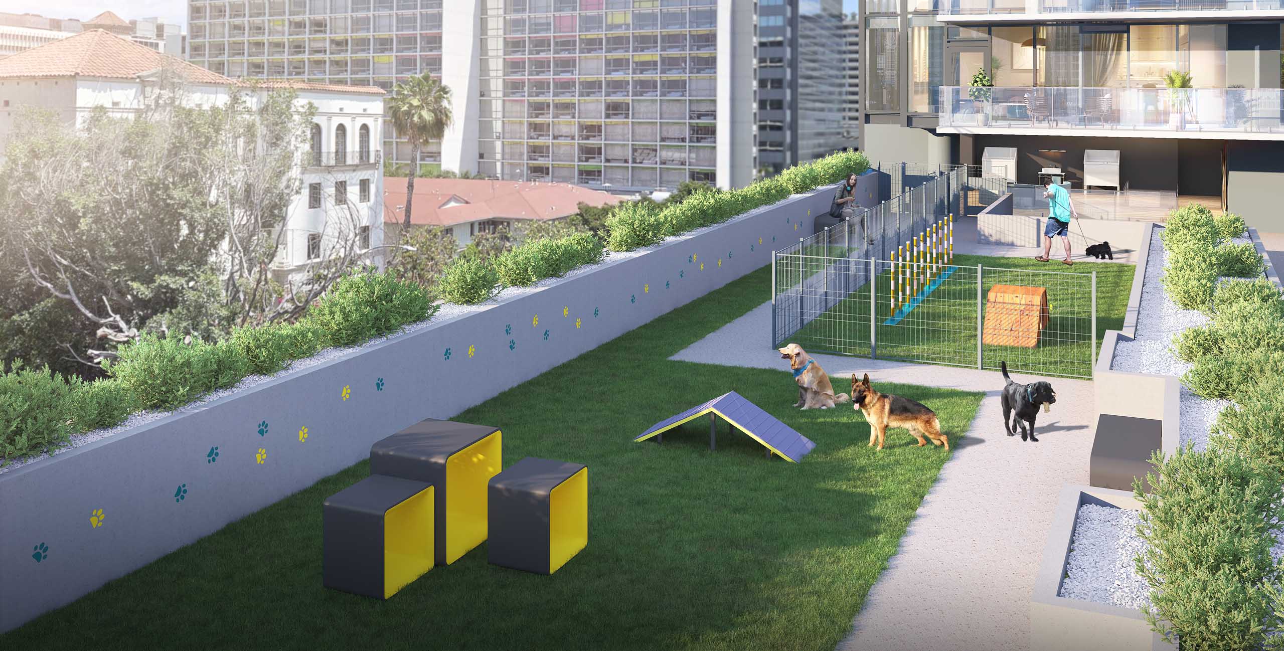 - Dog Park with Pet Lounge and Grooming Stations