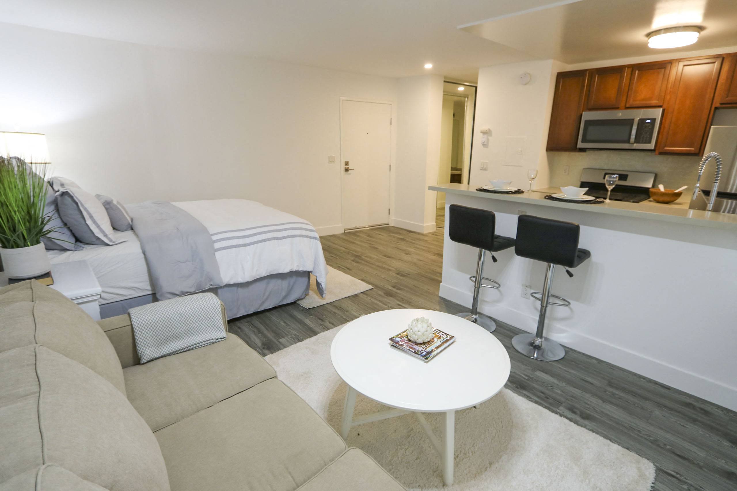 Welcome to Westwood Riviera Apartments, a coastal community that seamlessly blends the features of a coastal resort with the comforts of a luxury home. Nestled in an unbeatable location near sandy beaches and Downtown LA, our collection of studios and one-bedroom apartments in Westwood, Los Angeles offers the best in urban living. Stop by and discover our spacious layouts for yourself. Upscale Living in Our Westwood, CA Apartments Any one of our Westwood, CA, apartments could become your private sanctuary. Ranging in size from 500 to 1,000 square feet, these lofts and one-bedroom options offer a perfect blend of space, style, and numerous amenities. They create a home you'll adore—one featuring hardwood floors, a sleek kitchen with a gas range, and an elegant fireplace for those cozy evenings. Several of our apartments for rent in Los Angeles even include vaulted ceilings and private patios or balconies that connect you to the city. Every corner of our community is captivating, and this includes our leisure areas. Resort-inspired luxuries compete for your attention, from the heated pool with a jacuzzi to the dry sauna and the cozy poolside firepit. Your day can be as productive or as relaxing as you want it to be—whether you’re breaking a sweat at the modern fitness center with Peloton bikes or spending a leisurely afternoon swaying in the hammock-style chairs. Our prime location in the heart of Westwood places these apartments in Los Angeles within easy reach of everything you seek, whether it's the charm of Hollywood, the lively downtown scene, or the sun and surf at Venice Beach. However, words can only convey so much. To truly immerse yourself in the Westwood Riviera experience, schedule a tour and see it all in person.