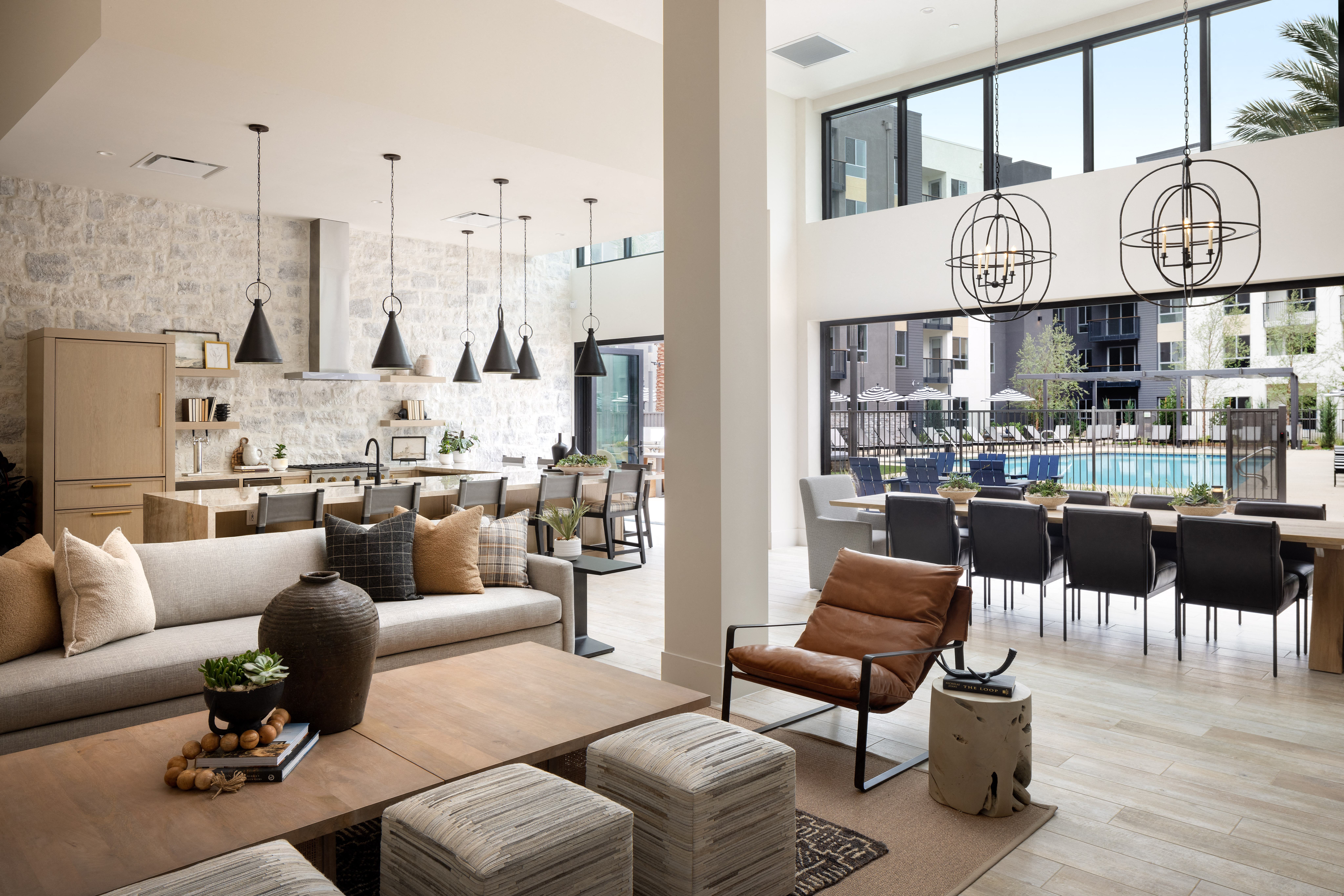 - The Lodge - gourmet kitchen, bar seating, an eight-person dining table, and plush social seating areas