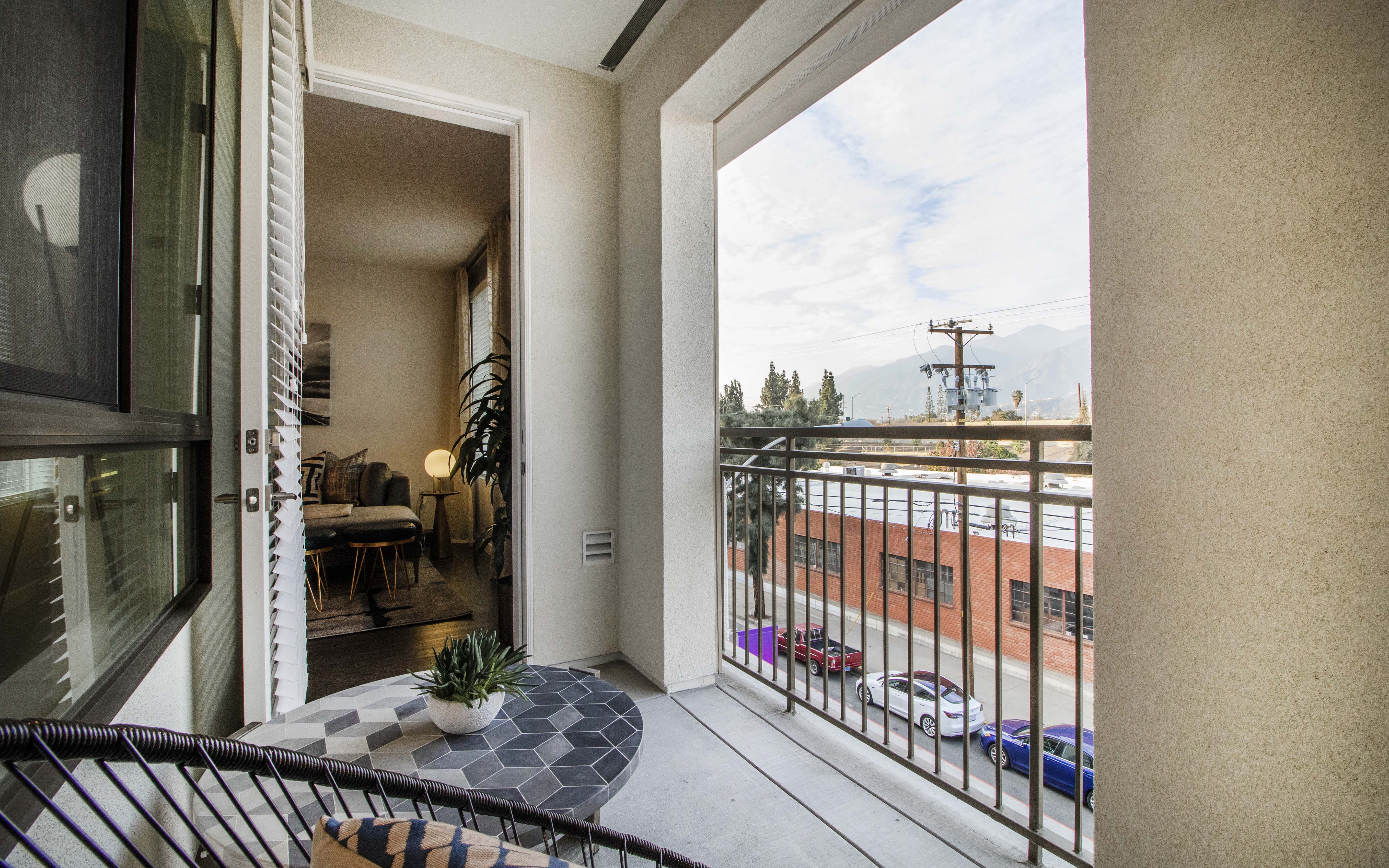 - Sky Deck—4,000+ sq. ft. rooftop deck with lounge spaces, TVs, and sweeping views of the San Gabriel Mountains