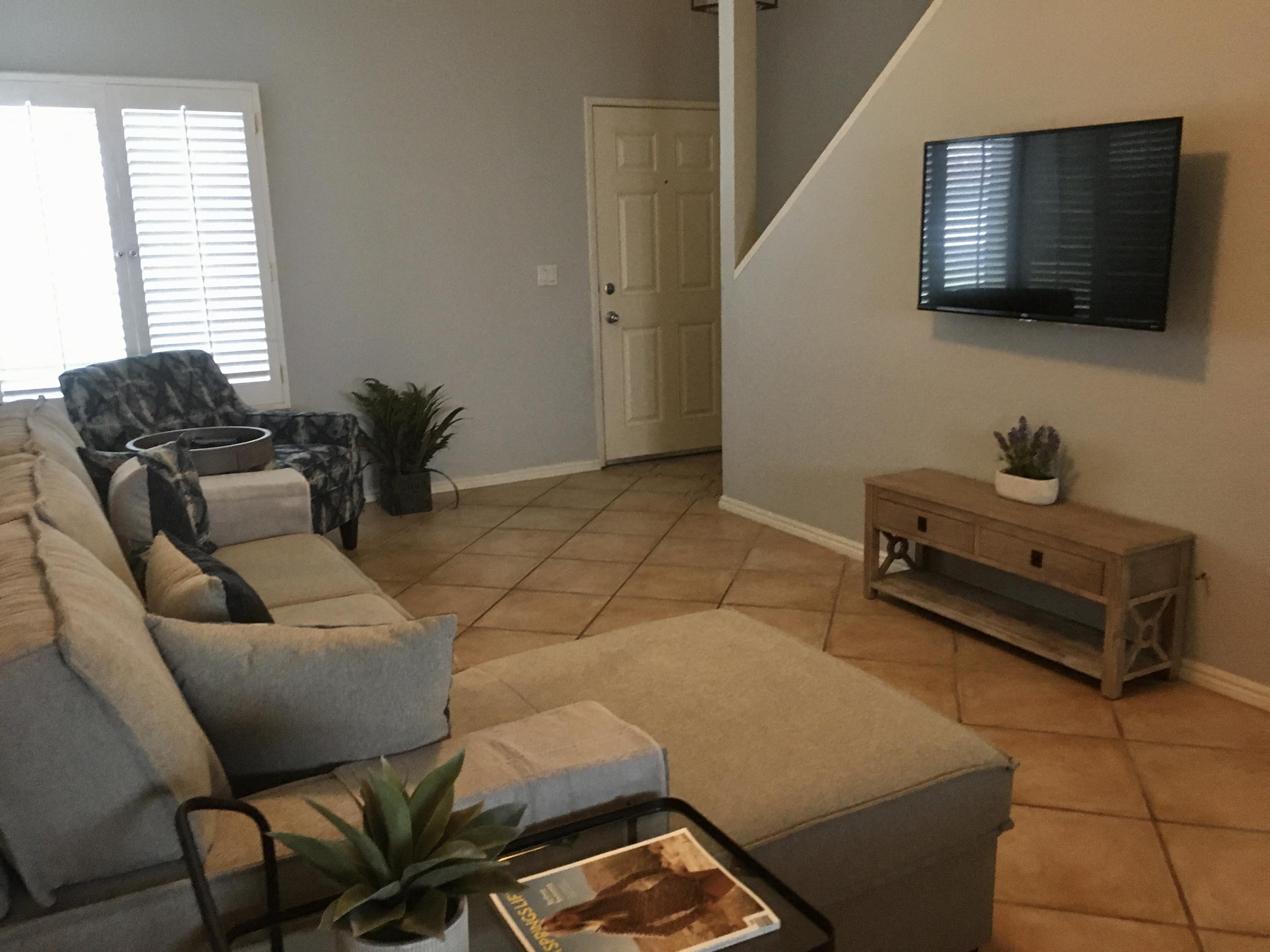 Located within the lovely, gated community of Mountain View Falls, this beautifully remodeled 2 bedroom, 2 bath, end unit has all stainless steel appliances (including refrigerator), granite counter tops, interior washer & dryer, ceiling fans; balcony and even comes newly furnished! Living room has a 42 flat screen TV; 2 twin beds downstairs and a king bed upstairs. The 2 car garage has direct access through the large private patio, great for entertaining and is just a short distance to the refreshing community poolspa, barbeques, tennis, pickleball and basketball courts. Within close proximity to El Paseo restaurants, shopping, golf venues and just minutes from the College of the Desert, CSUSB - Palm Desert campus and the 10 Freeway. No smoking, no pets. Landlord would prefer a 9 month lease, although may consider shorter or longer term. Seasonal rates do apply, call agent for details. Please Do Not go direct. This property is being offered by: Donna Ostak Property Management CA RE Lic #01805034 - Broker Please contact our office at: 951-254-3688 to schedule an appointment.