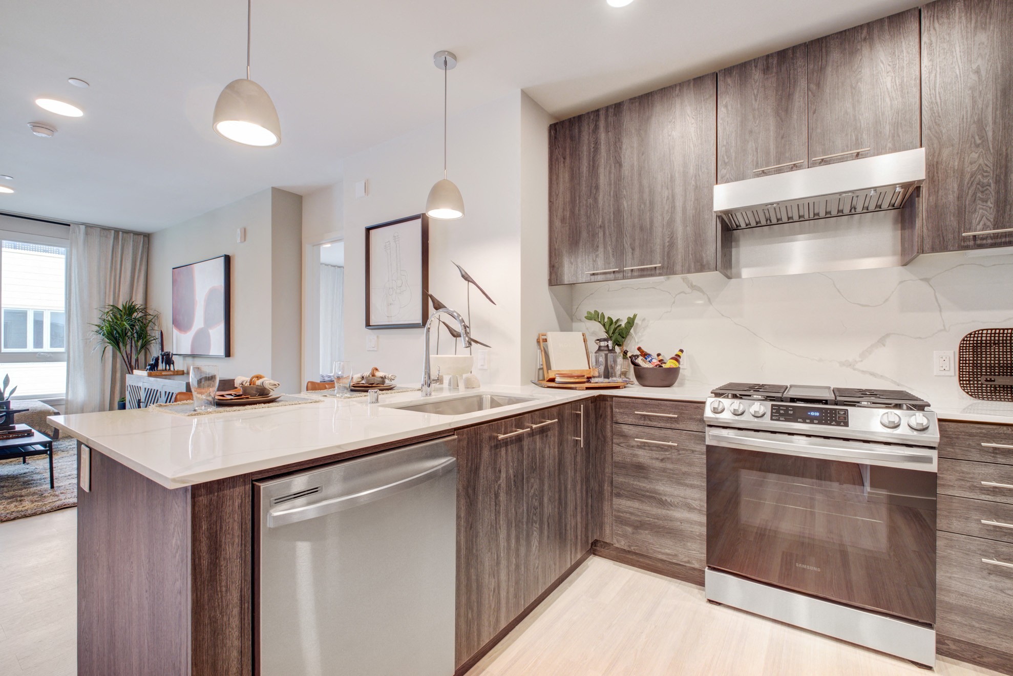 - Samsung stainless steel appliances including gas ranges and front control dishwashers