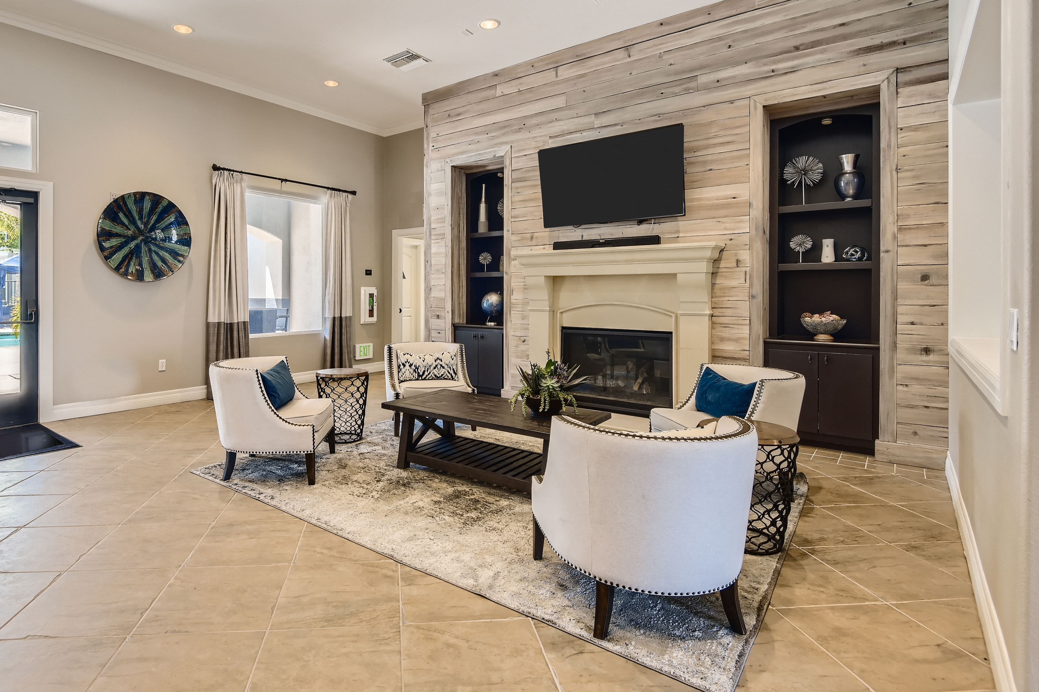 - Landscaped courtyard with outdoor seating