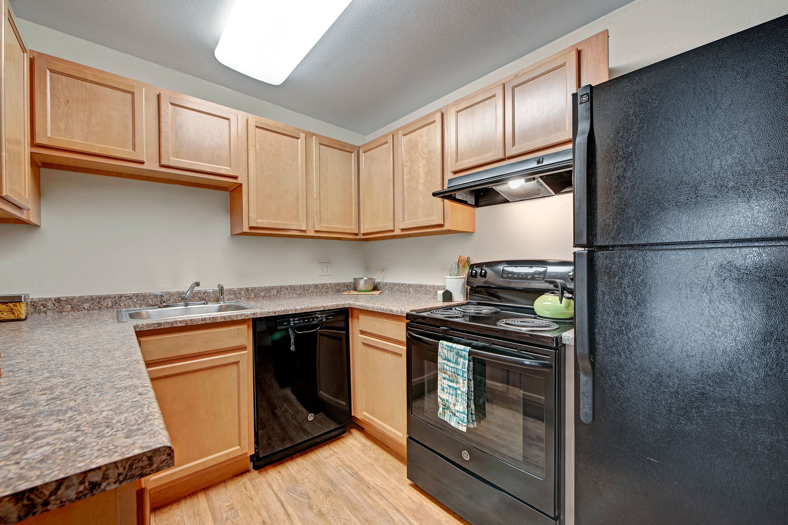 Choose from one or two-bedroom floor plans designed with you in mind. You’ll love our modern updated kitchens that feature custom maple cabinets, neutral taupe countertops, lovely wood laminate flooring, a full suite of energy-efficient appliances including a dishwasher, and an eat-in kitchen. Enjoy warm baseboard heating during those chilly Colorado winters, and appreciate your private patio or balcony when the weather is more temperate. Our homes have large windows and closets for lots of light and storage.