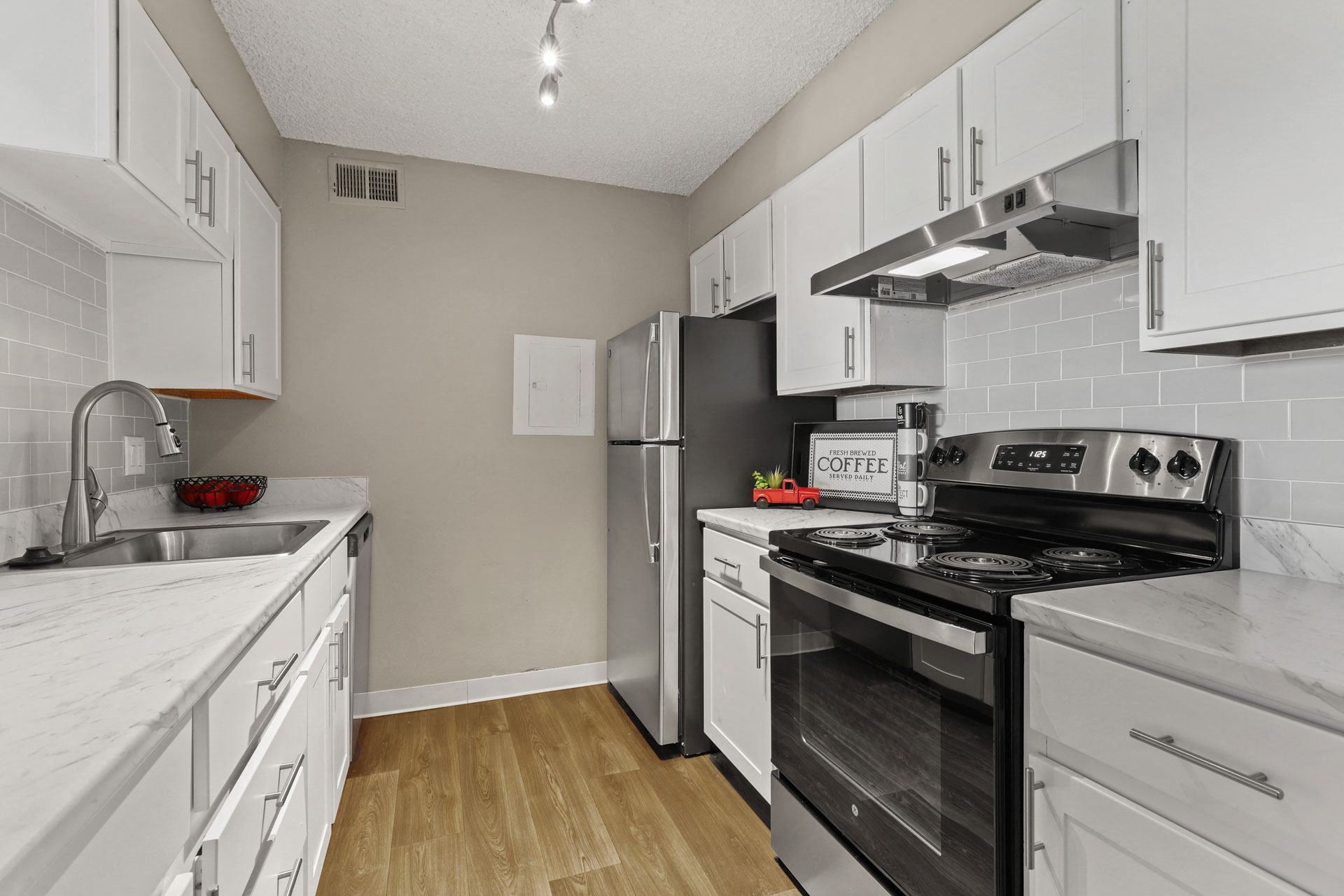 - New shaker style cabinetry with chrome hardware