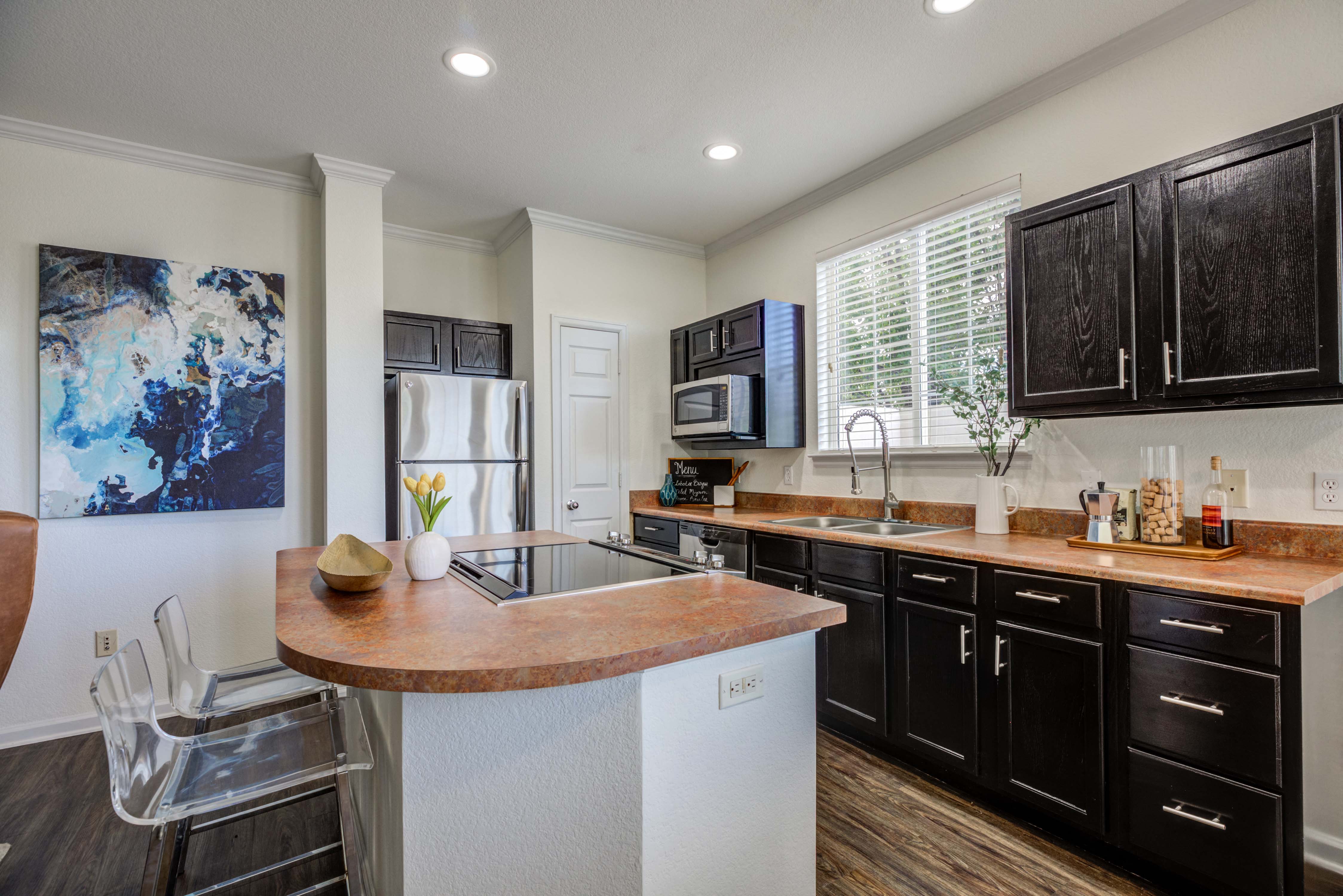 - Fully-equipped gourmet kitchen with black appliances*