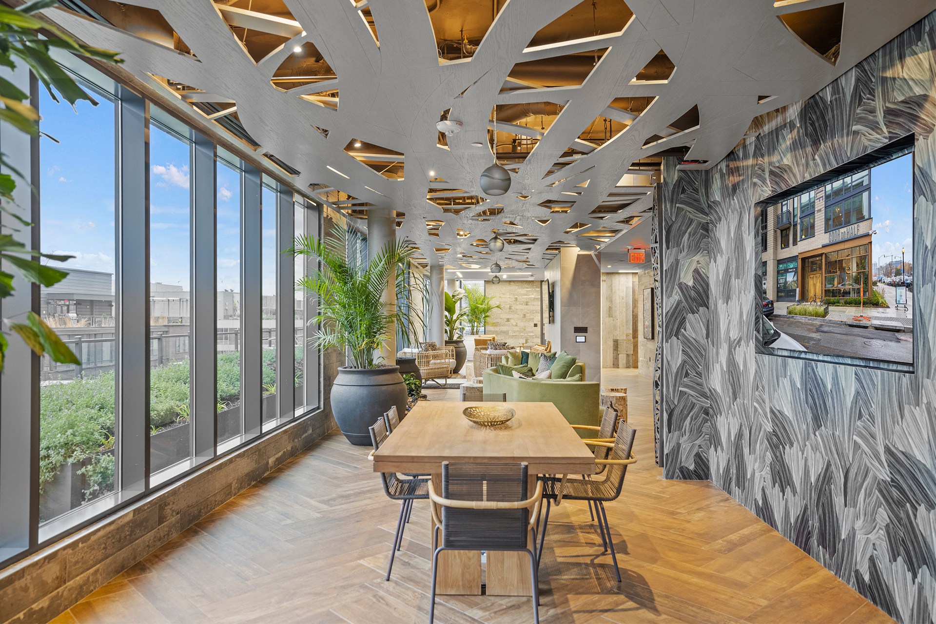 - Welcoming lobby with a communal table for flexible work options or simply catching up with friends