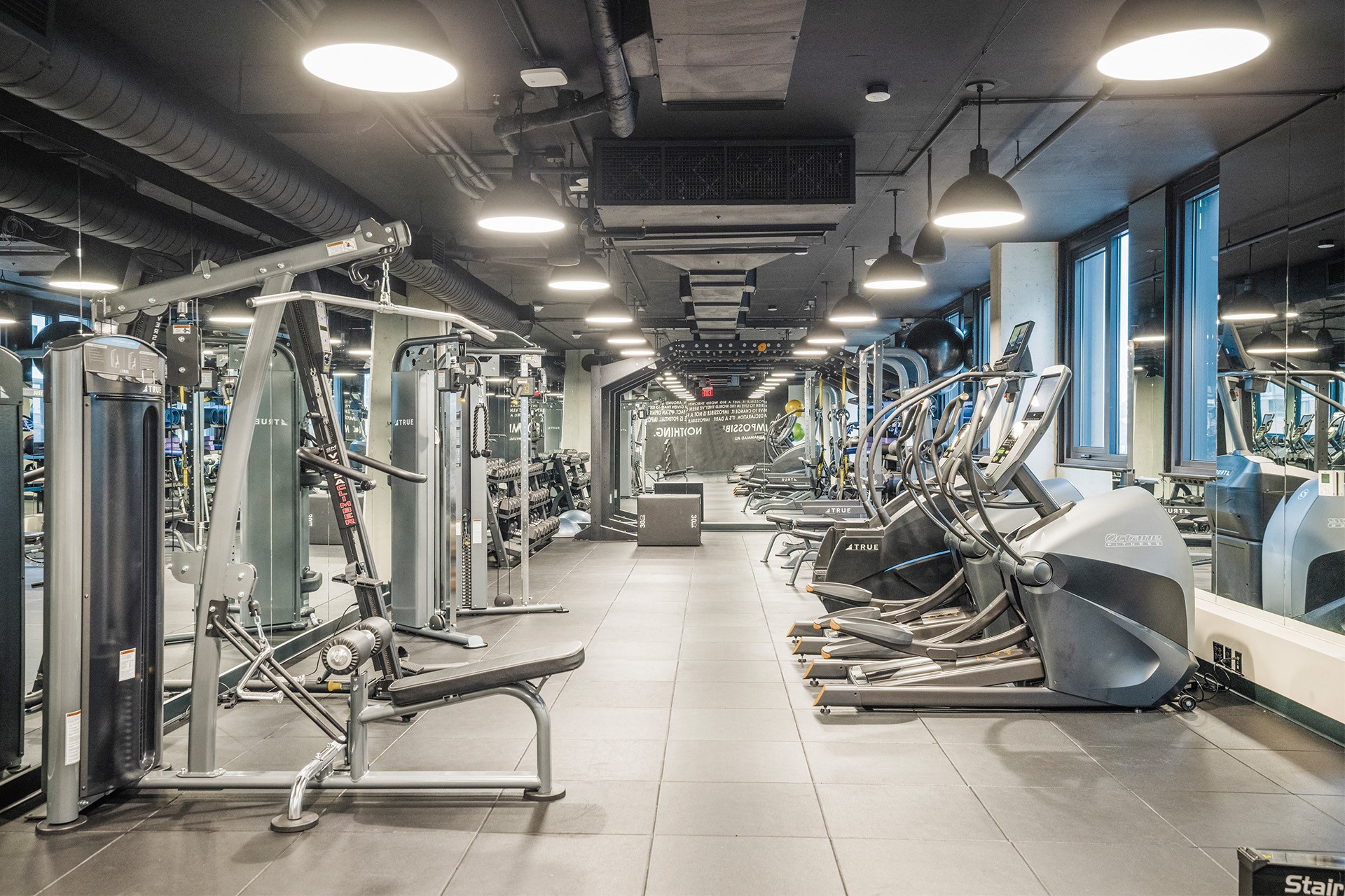 - Modern commercial grade fitness center with strength, cardio and stretching options