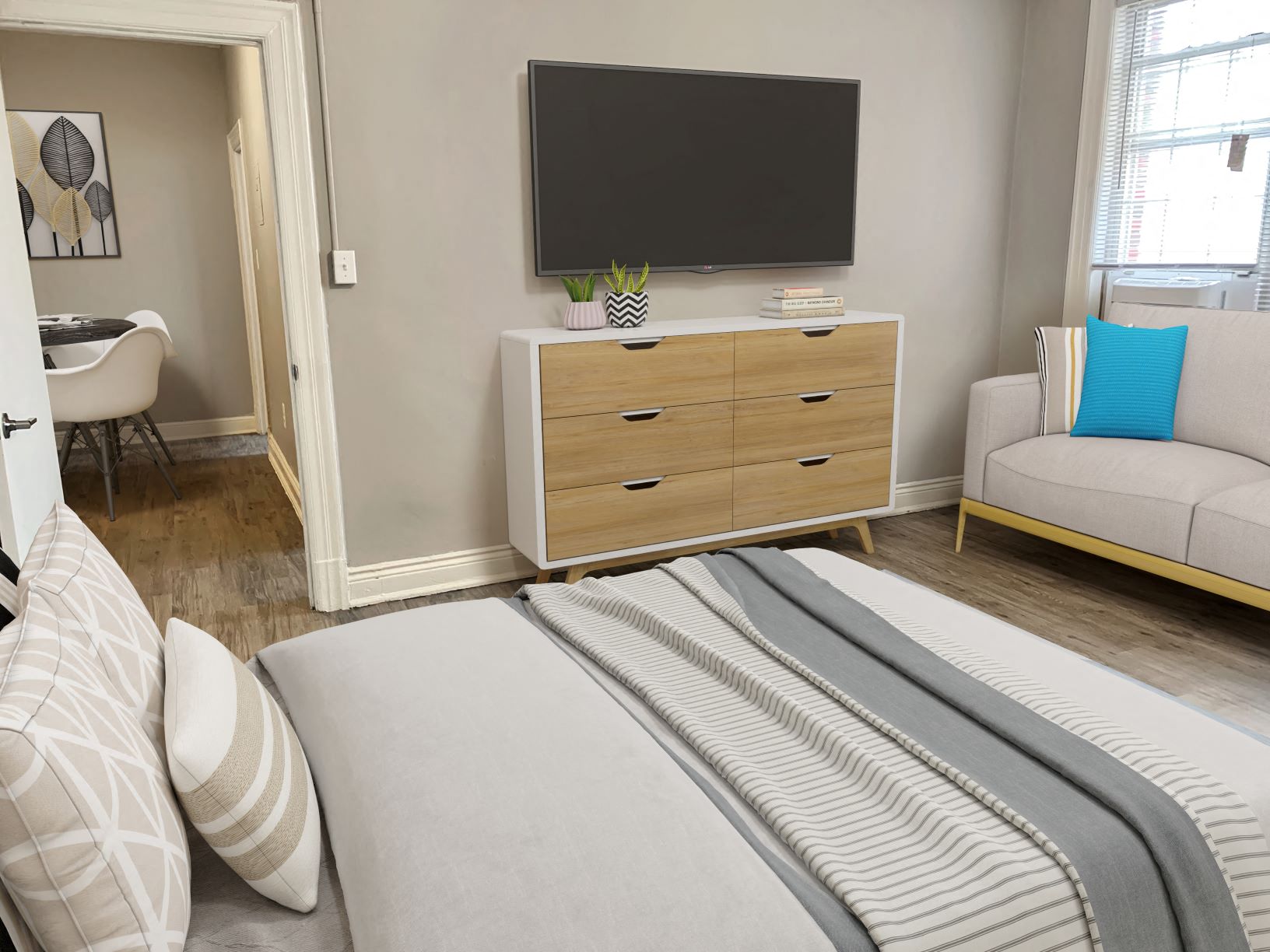 - Hardwood or plank flooring