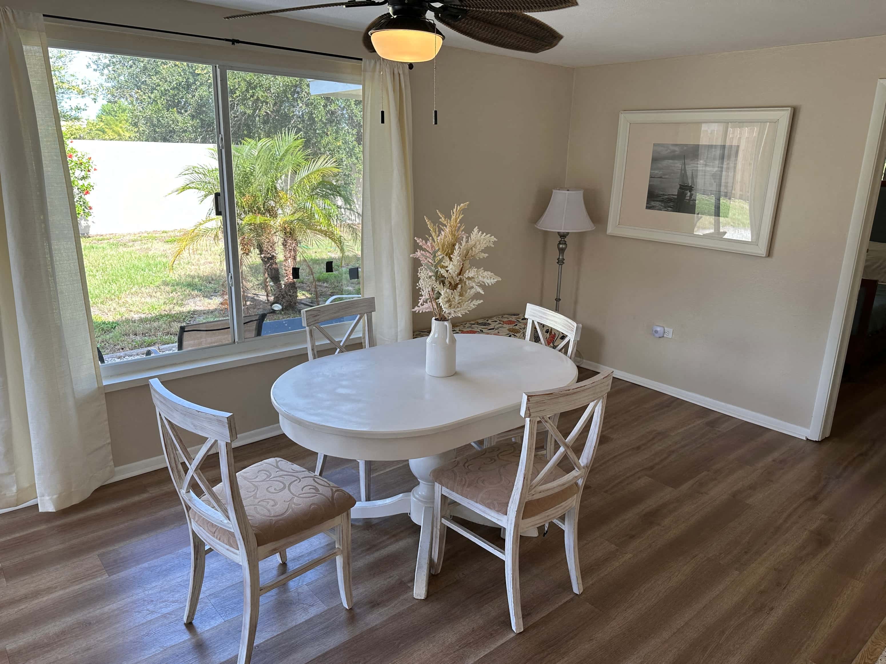 Available for immediate move in. Offered furnished or unfurnished for an annual rental. This pristine 32 home with a 1 car garage is located in a quiet West Bradenton neighborhood and offers a spacious, open floor plan. Featuring luxury vinyl plank laminate, ceramic tile and terrazzo flooring throughout the home. A serene sitting area off the back of the house overlooks the large fenced in...