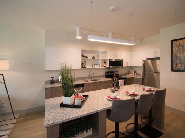 At The Lofts at South Lake, interior details shape your lifestyle. The features of our apartments stand out in the crowd. Well-lit living spaces and modern amenities are apparent from the moment you step through the door of any of our studio, 1, and 2 bedroom apartments in Clermont, FL. Browse through our floorplans and do not hesitate to give us a call to secure your place in our inviting, pet friendly community. Lofts at South Lake partners with The Guarantors to provide the renter's alternative cost-effective coverage options to a traditional security deposit. The Guarantors also provide applicants with rent guarantee coverage as part of the applicant's qualification process. Our team is excited to share this opportunity with you. Traditional security deposits remain accepted if The Guarantors is not preferred. Start a New Chapter in Our Clermont Apartments You will love calling any of our studio, 1, and 2 bedroom layouts your new home. Ranging between 480 and 968 square feet, each floorplan has been thoughtfully designed to provide you with an outstanding living experience. You’ll feel the comforts of home with the glass top stove, kitchen islands, and in-unit washer and dryer. The thought and care that we put into these Clermont luxury apartments are also visible in the community amenities. Our residents can host friends and family or just enjoy a trip by themselves to our courtyard swimming pool, 24 hour fitness center, and media lounge – all available to our residents. Discover everything The Lofts at South Lake life has to offer by scheduling a tour or stopping by today. Our friendly leasing team is waiting to help you find the perfect home.