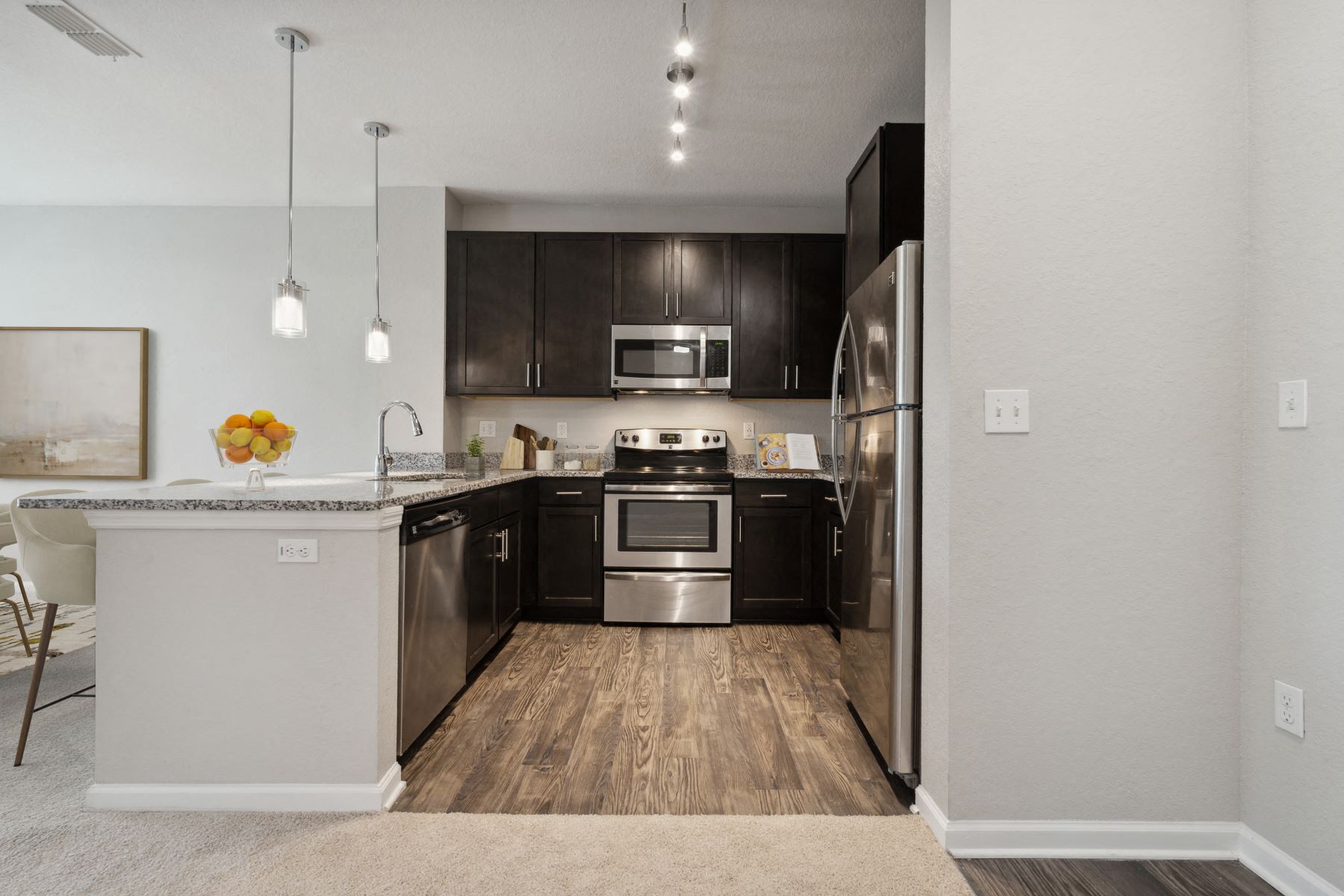 - Custom Espresso Cabinetry with Stainless Hardware