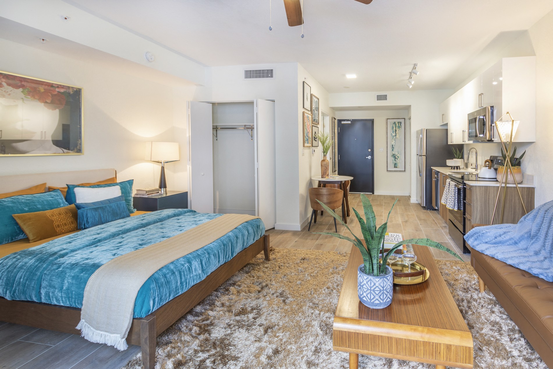 Studio, 1 & 2 Bedroom Apartments Alameda West Apartments encompasses the Miami life in all its eccentricity. With flawless designs, versatile layouts, and features that speak of luxury, our studio, one, and two-bedroom apartments in West Miami cater to driven achievers and city explorers. We have a variety of magnificent floor plans and over 300 units ready to become your new home today! Renderings are an artist's conception and are intended only as a general reference. Features, materials, finishes and layout of subject unit may be different than shown. Our apartments are the perfect mix between tranquility and modern utility. Any of the 450-through-1,050-square-foot homes come complete with high-end details including dual-toned cabinetry, porcelain floors, sliding glass doors, contemporary chrome fixtures, designer-tiled bathrooms, and oversize, impact-resistant windows. We have Each unit has an inviting kitchen space equipped with GE stainless-steel appliances and quartz countertops. Beat the West Miami heat with ceiling fans located in each living space, or relax and unwind on your personal balcony or patio while overlooking the courtyard or city views. Beyond the walls of your sanctuary lies a world of top-level amenities. The pool and tropical deck allow you to experience the high-class comfort you deserve, while the outdoor dining area provides a stylish place for alfresco dining. Alameda West is the perfect home for all your favorite after-work pastimes. Explore our resident entertainment lounge, the cyber café, the yoga & spin studio, or take your furry friend for a walk around our pet-friendly property. Don’t forget about the inviting play area for our younger residents to call their own. Our apartments for rent in West Miami create the luxurious space you need to live, work, and play by your own rules. Give us a call today to find out more.