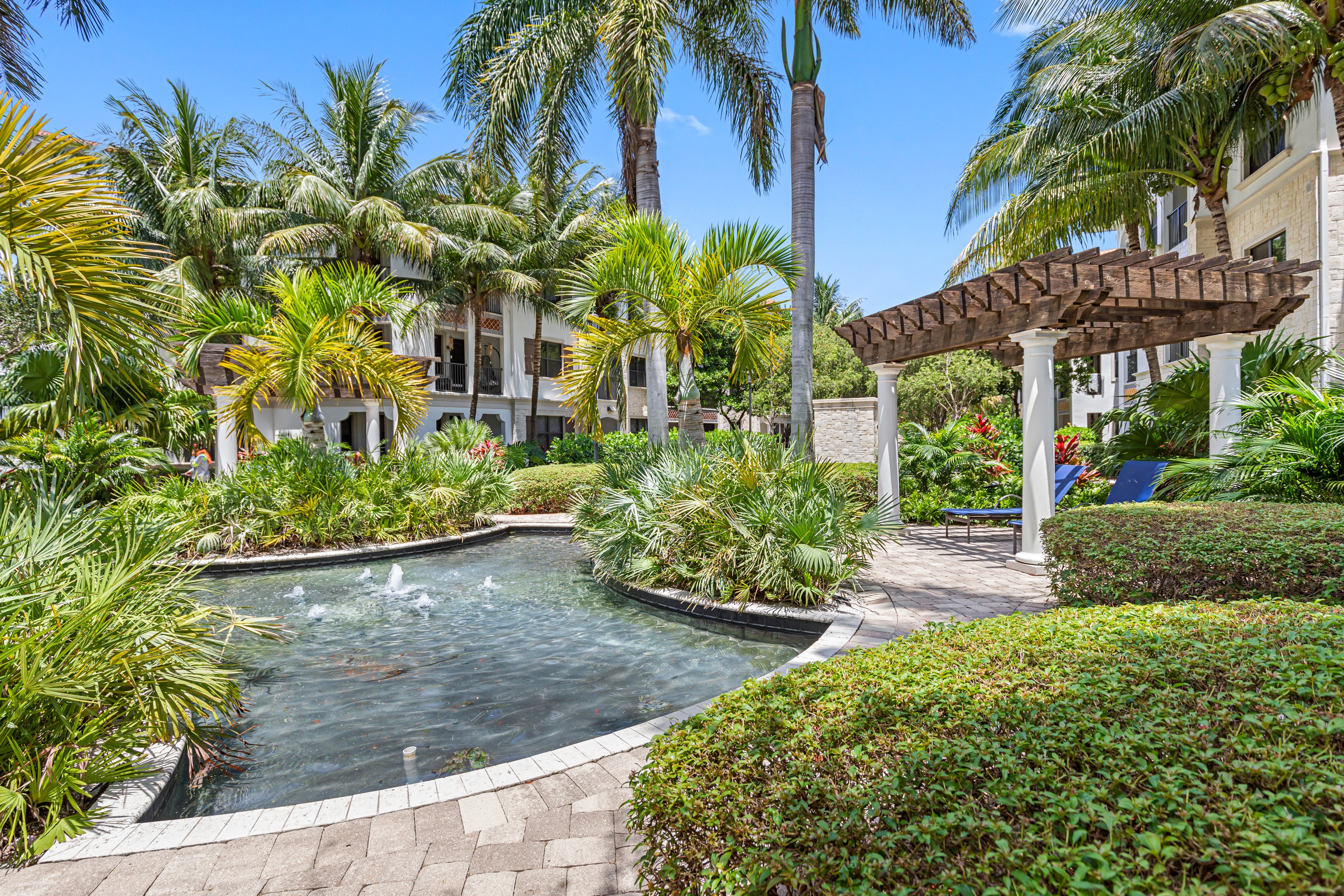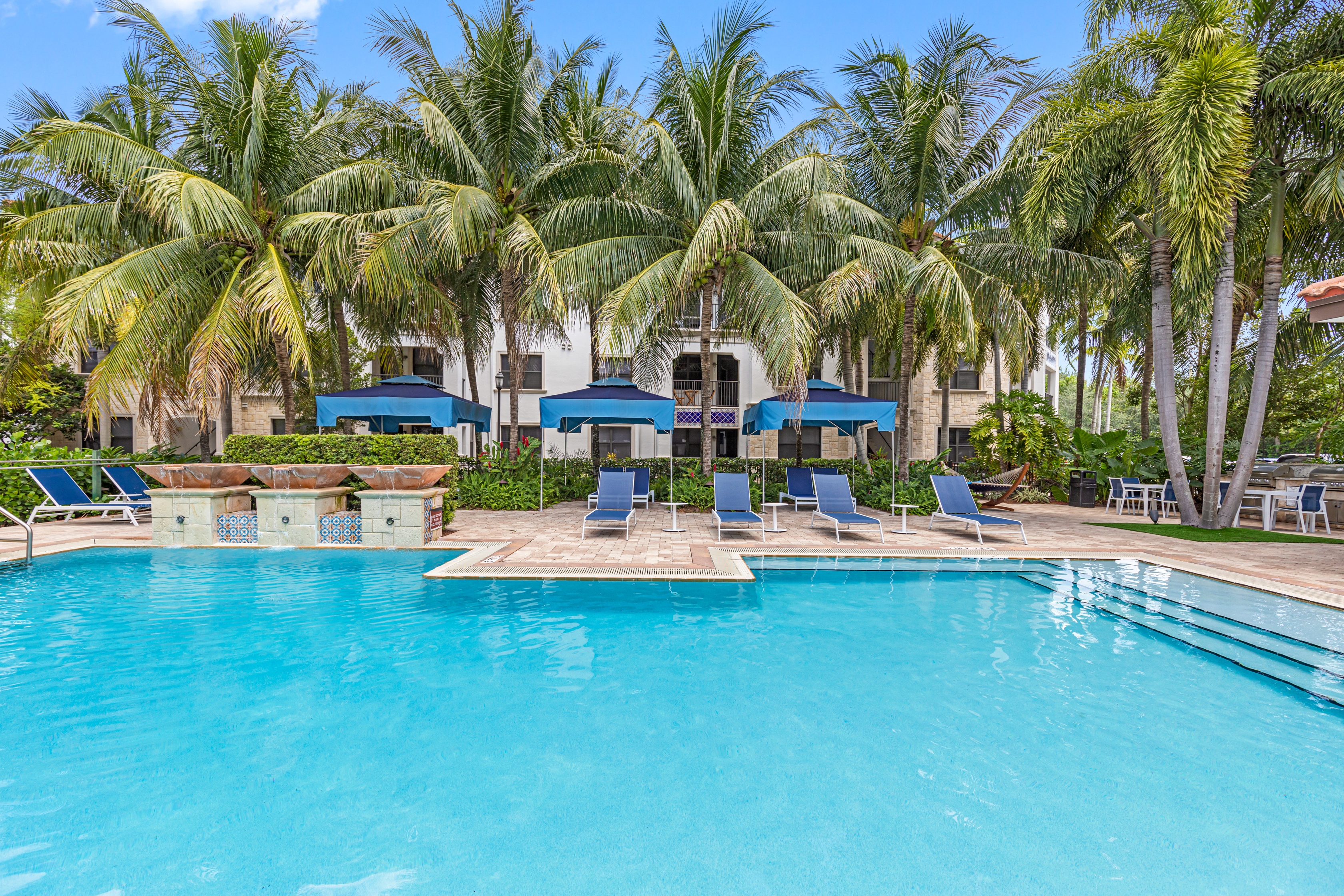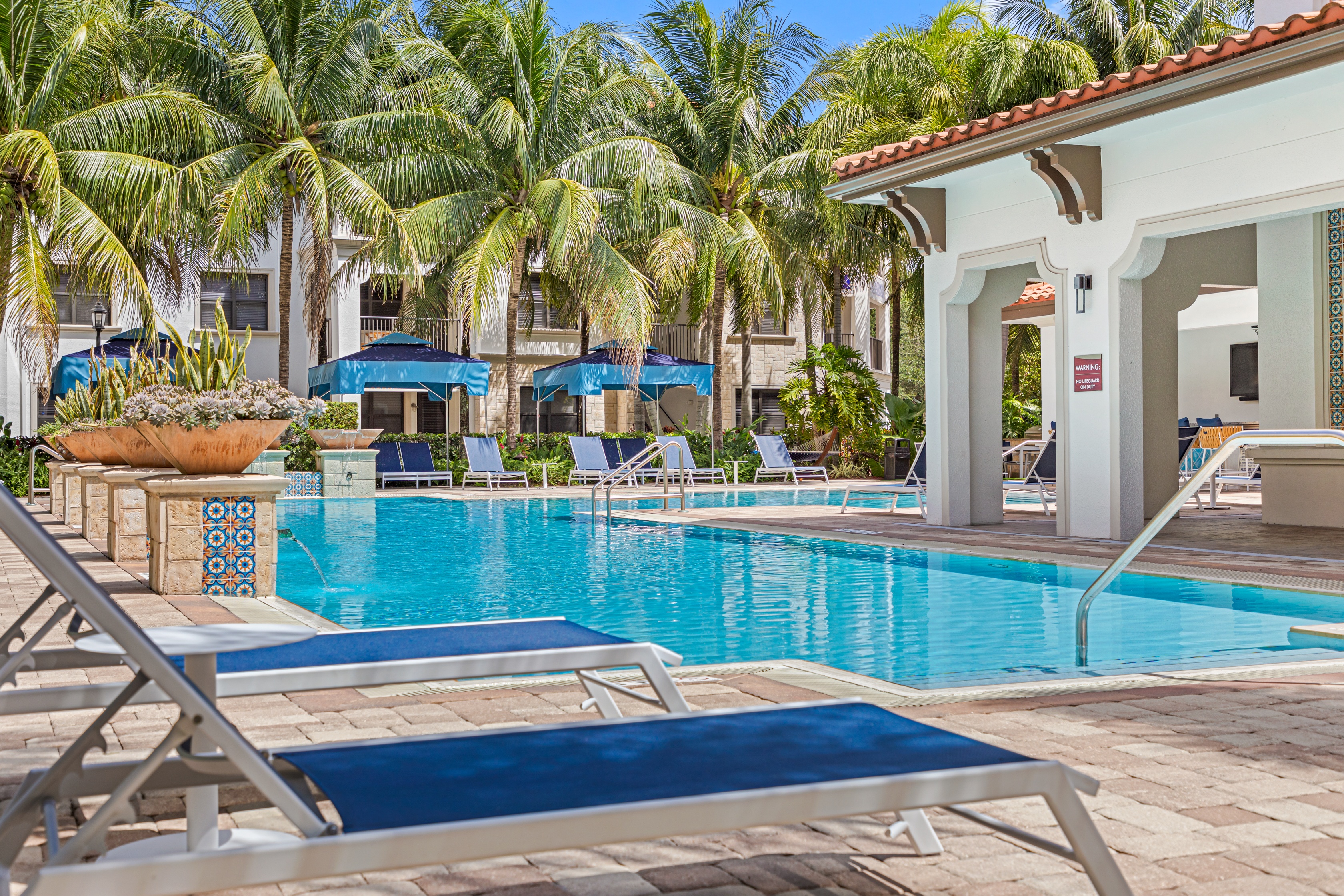 - Stunning, European pool with a loggia lounging area, sunning deck, spa, personal poolside cabanas, day beds, outdoor grills create an enticing way to lounge the day away.