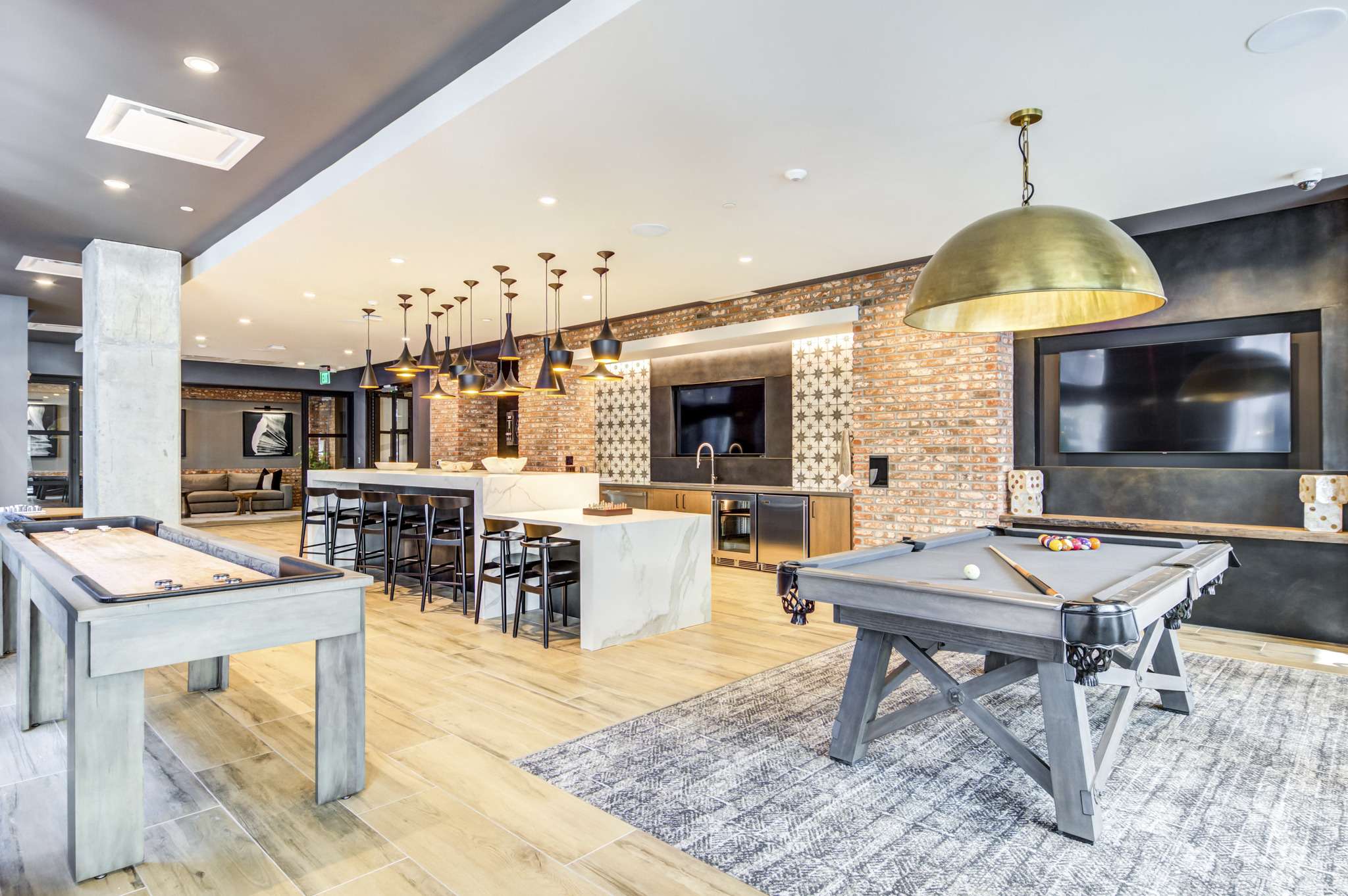 - Gaming lounge with billiards table