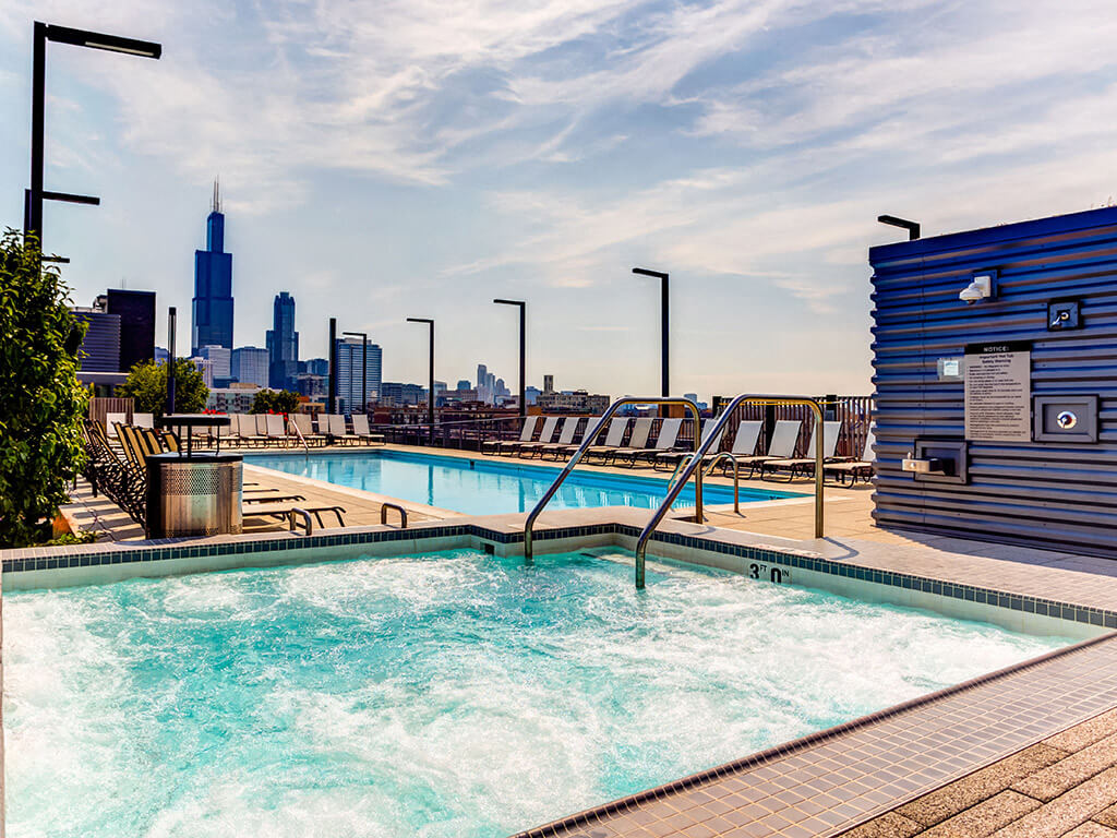 The convertible, 1 and 2-bedroom apartments at The Madison have everything you need to live comfortably—and in style. Enjoy living in luxuriously appointed apartments that feature modern kitchens, plank flooring, custom bathrooms, and thoughtful floor plans in Chicago, IL. Welcoming You to Our Chicago Apartments in the West Loop Space and style marry to craft a home you’ll love returning to. Our cozy studios can feature up to 633 square feet, offering an easy-to-maintain residence, while the one-bedroom options cover up to 844 square feet for even more room to roam. As for our most expansive homes, the two-bedrooms, they reach an impressive 1,319 square feet. All these apartments in West Chicago come with contemporary cabinets, hardwood floors, and ceramic tiled bathrooms. Designer fixtures light up every room, while the panoramic city views and expansive balconies create an inviting atmosphere. Once you’re done admiring the urban landscape, make your way outdoors for a taste of much-needed relaxation. Enjoy your favorite drink against the stunning city backdrop on our rooftop terrace or take a refreshing dip in the resort-style pool. Gather your friends by the cozy firepits or wind down in the hot tub, while your furry companions run freely at the dog park. We also offer green picnic areas, 24-hour package pick-up services, and 24-hour front desk concierge. Contact us today and claim one of our Fulton Market apartments.