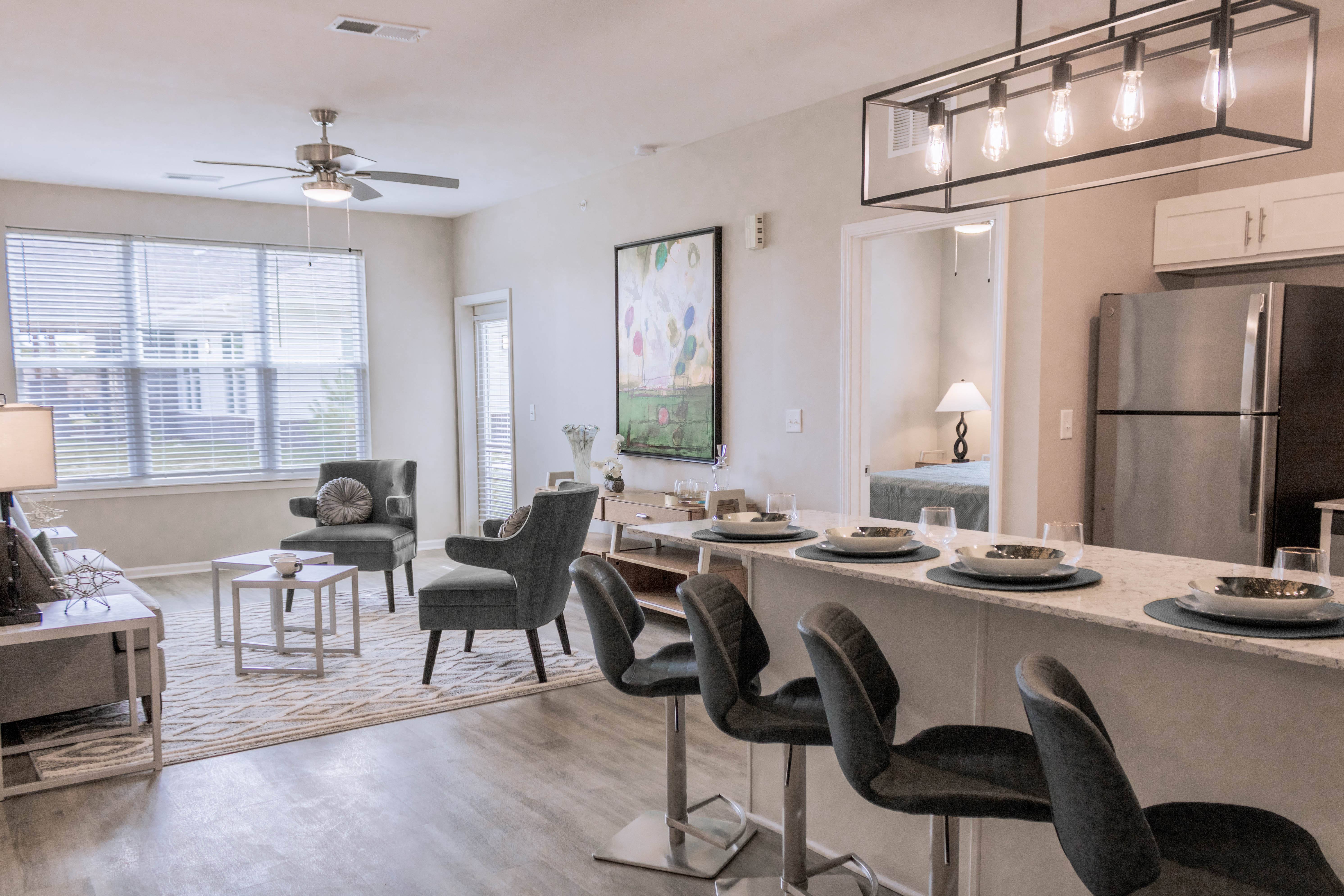 Modern designs, elegant finishes, and upscale amenities are waiting for you at Arlington Farms. Our Greenwood apartments come in one-, two-, and three-bedroom layouts that are
