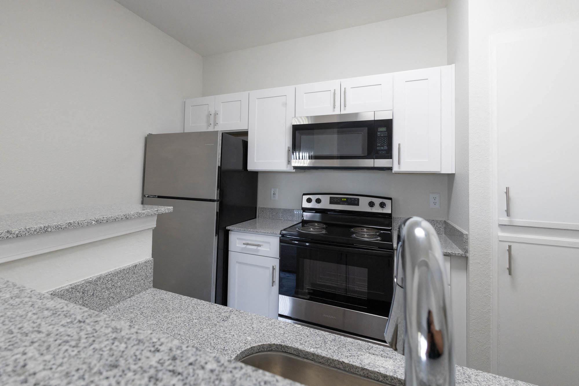 - Newly renovated homes include black appliances and granite counters