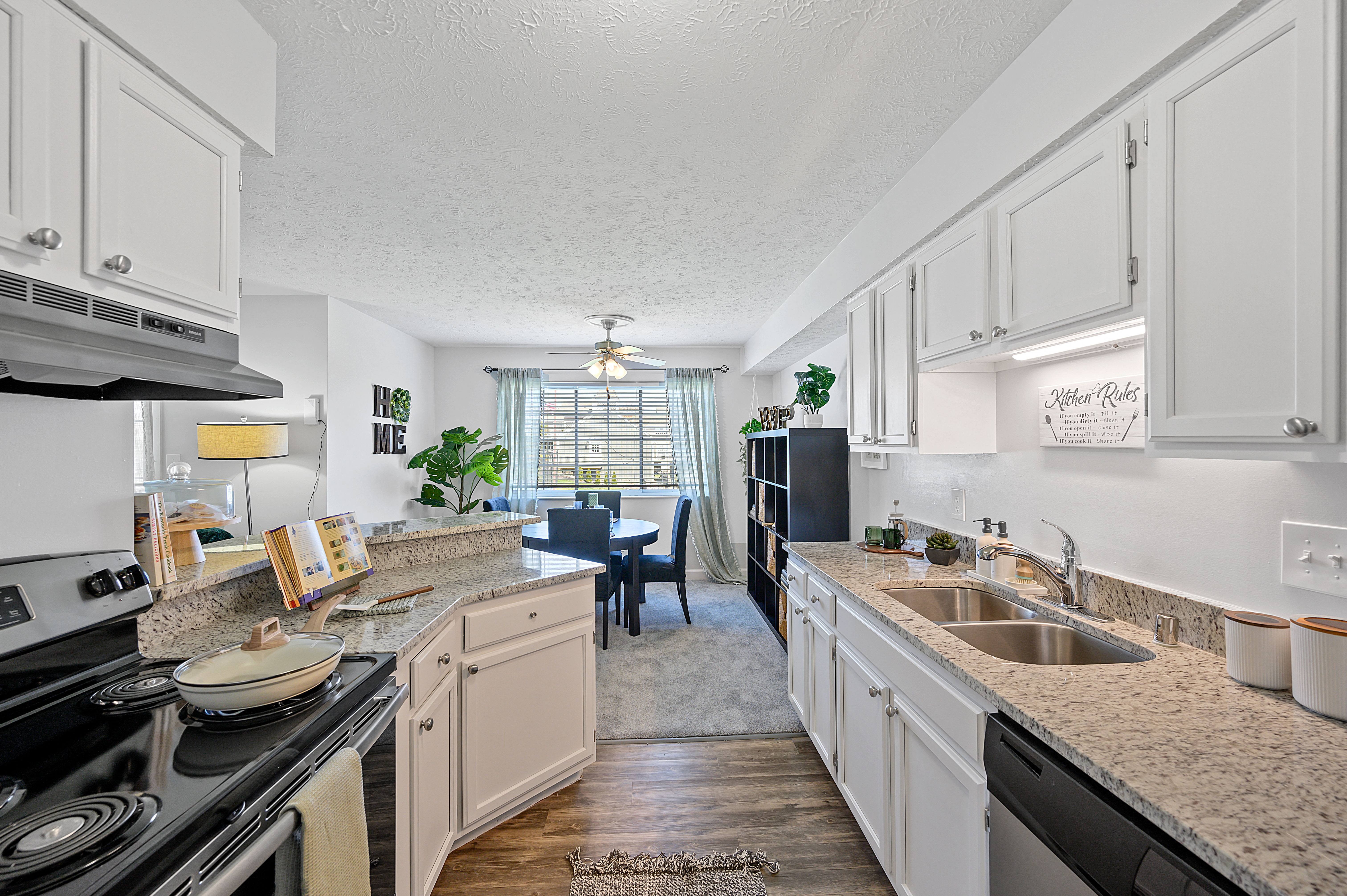Let Wright’s Point Apartments elevate your lifestyle with the spacious interiors, modern finish-es, and creature comforts you need for a contemporary routine. Our one and two-bedroom apartments in Fort Wright, KY, offer comfy living areas and elegant kitchens, as well as unique leisure areas including a sports court and a gazebo. Find your favorite layout, schedule a tour, and come see our park-like community in person! Please Note: Some features shown (LVT and fireplaces, etc.) may vary from unit to unit. Please consult with our leasing staff for more details. Schedule Your Self-Guided Tour NOW. Welcoming You to Our Modern Fort Wright, KY Apartments Located just off I-71, our apartments for rent in Ft Wright, KY, deliver on the promise of conven-ient suburban living combined with lush interiors. Our floor plans start with one-bedroom op-tions covering 870 square feet and go all the way up to 1,220 square feet in the case of our two-bedroom formats. Regardless of which one you choose, granite countertops in the kitchen are a given, as well as beautiful ceramic tile tub surrounds and six-panel doors throughout. To keep in line with the elaborate design, you’ve also got a two-tone grey paint scheme to make your abode stand out from other Fort Wright, KY, apartments. Moreover, it is worth noting that select dwellings deliver all-white cabinets, modern 6” baseboards, and wood-inspired vinyl tile floors. Things get even better once you are outside. Our grounds are filled with activities you can do, starting with a swim in the sparkling pool. Pump some iron at our fully equipped fitness center, have a game of billiards with neighbors, or just immerse yourself in the latest bestseller at our gazebo surrounded by beautiful greenery. Throw in that we also offer short-term leases, and you know that Wright's Point is a winner. Book a visit and see for yourself.