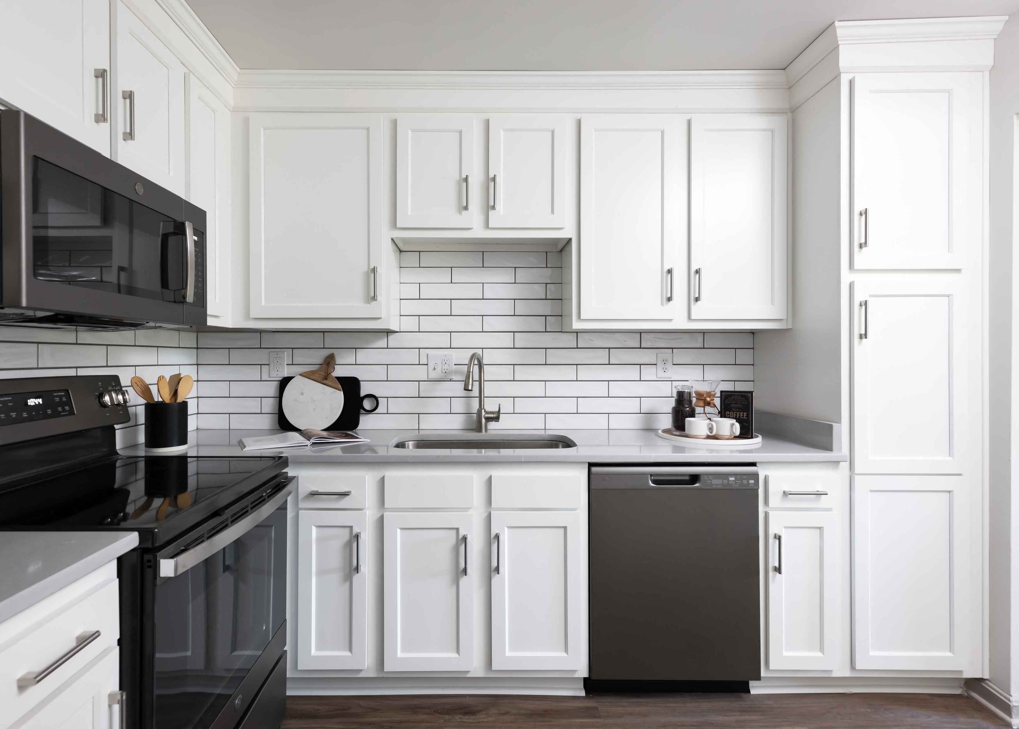 - White or maple cabinetry