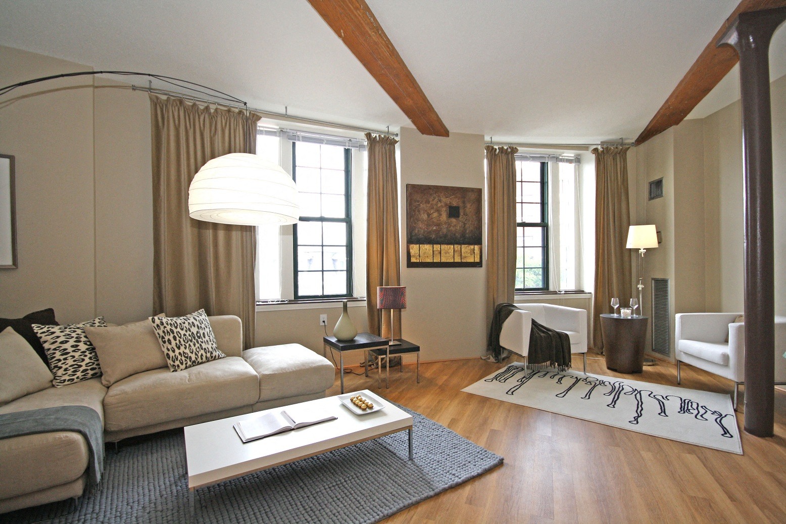 - High ceilings with natural wood beams*