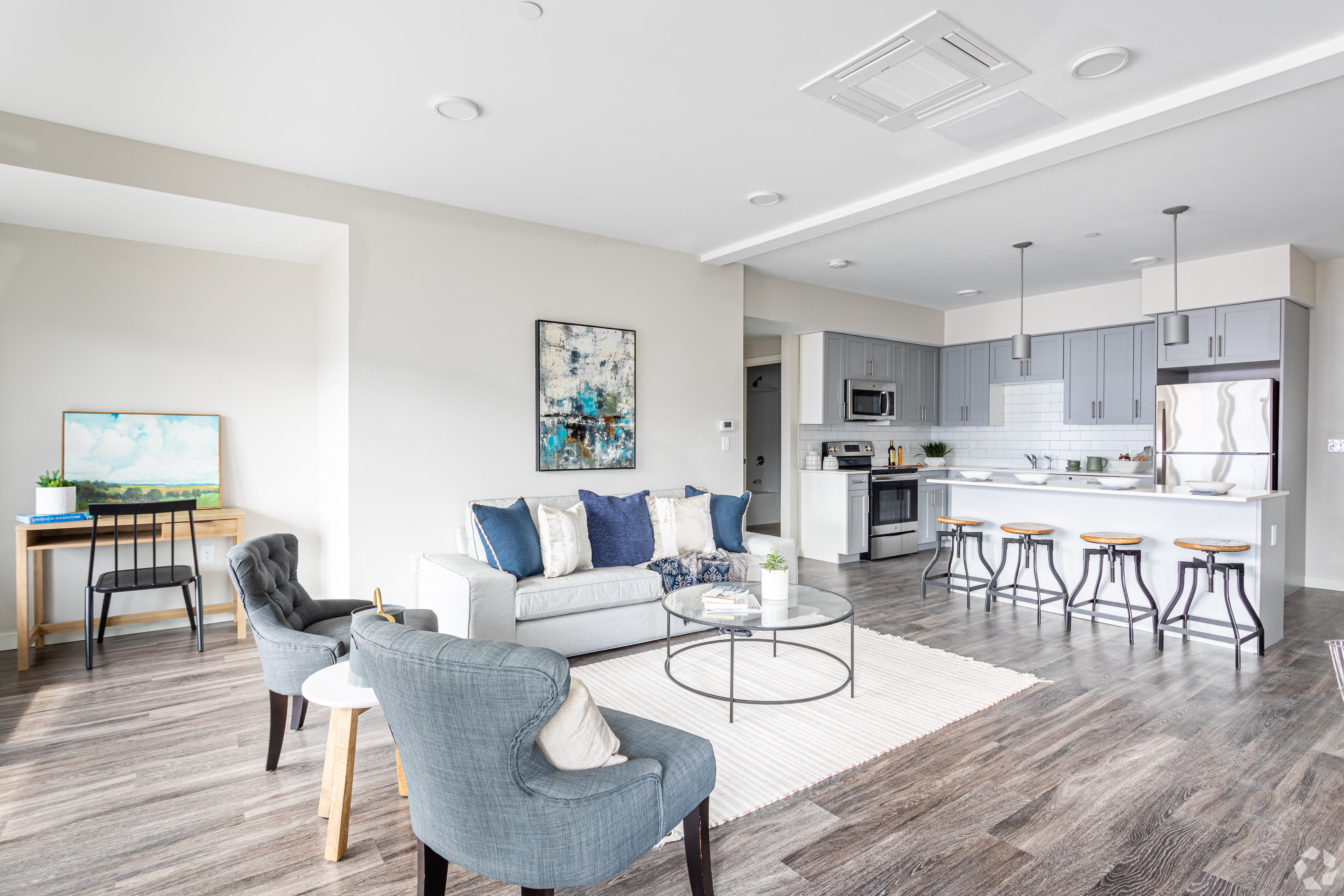 Our one and two-bedroom apartments in Lincoln, MA, deliver to high standards. Scroll through our wide array of unique floor plans and pick the one that best suits your needs. Then, schedule a tour and stop by to see your new home in person! Begin your next chapter at Oriole Landing Apartments. Whether you choose our one-bedroom options that span between 618 and 1,023 square feet or go for one of our more expansive two-bedroom suites that go as high as 1,472 square feet, the conveniences follow you throughout. The barn wood vinyl plank floors and modern lighting schemes are just some of the details included, not to mention the spa-like bathroom with porcelain tiles. Turn each dish into a culinary masterpiece in your cook-friendly kitchen with GE stainless-steel appliances, soft-close cabinets, prep islands, and quartz countertops. Meanwhile, the full-size washer/dryer sets will take care of the food stains left behind. Explore our Spacious Apartments in Lincoln, MA Beyond the door of these Lincoln, MA, apartments, a host of recreational spaces awaits. Start your day with a heart-pumping exercise at the fitness center, make your way to the patio and savor your post-workout meal fresh off the grill, then nurture your green thumb at the charming garden beds with agriculturist oversight. What’s more, bike racks, covered parking, electric vehicle charging stations, as well as on-site management and maintenance are also part of the package. There are plenty of good reasons to make Oriole Landing your home, but if you are not convinced yet, reach out to our friendly staff for more information.