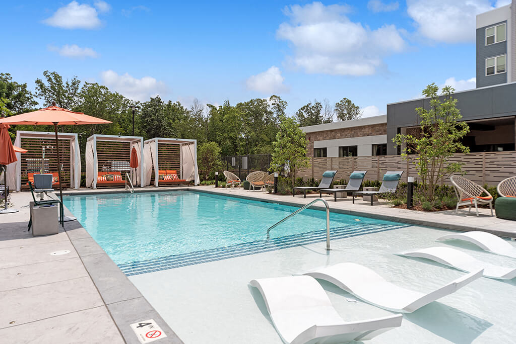 - Courtyards with firepits and lounge seating