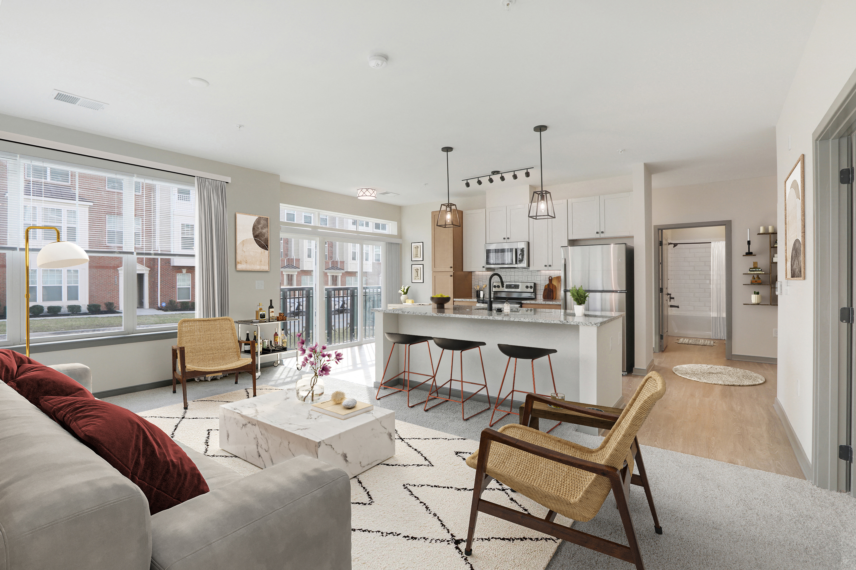 These luxuriously appointed residences include one and two-bedroom apartment homes. Regardless of which layout you choose, you’ll appreciate useful, intelligent features that just make sense; such as built-in USB outlets, extensive closet shelving, and oversized spaces that are built to multitask. So come, settle in, and enjoy an adaptable home that can be as relaxing, productive, or fun as you’d like.