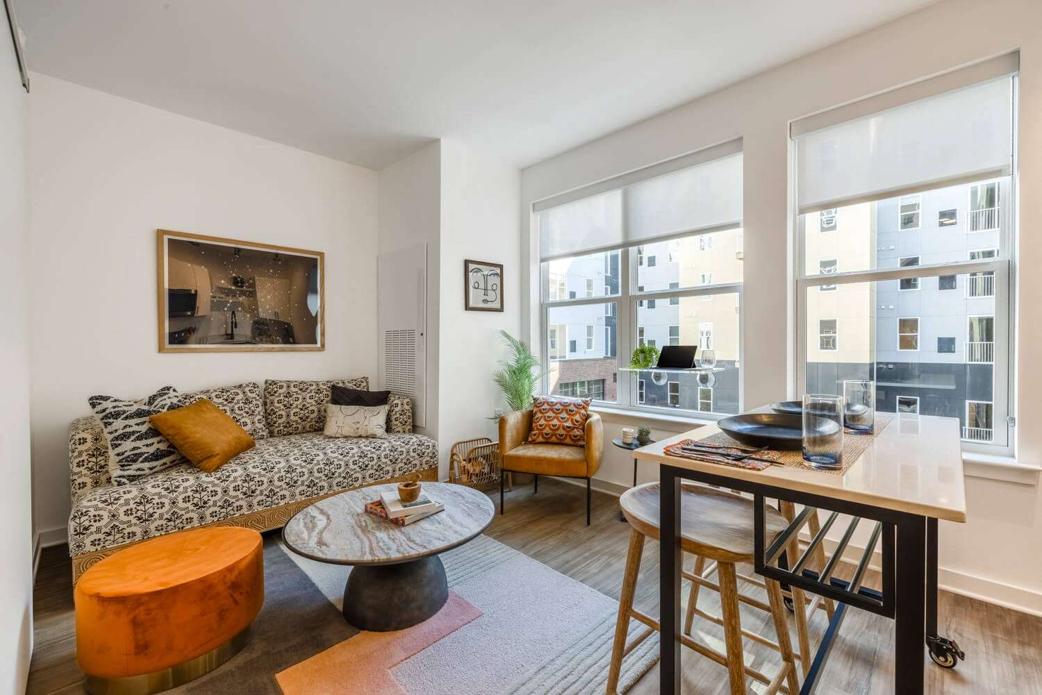 Latin for “star,” Stella is a striking new apartment building in New Carrollton, MD, where beautifully designed spaces and thoughtful programming bring people together to form new constellations of community.