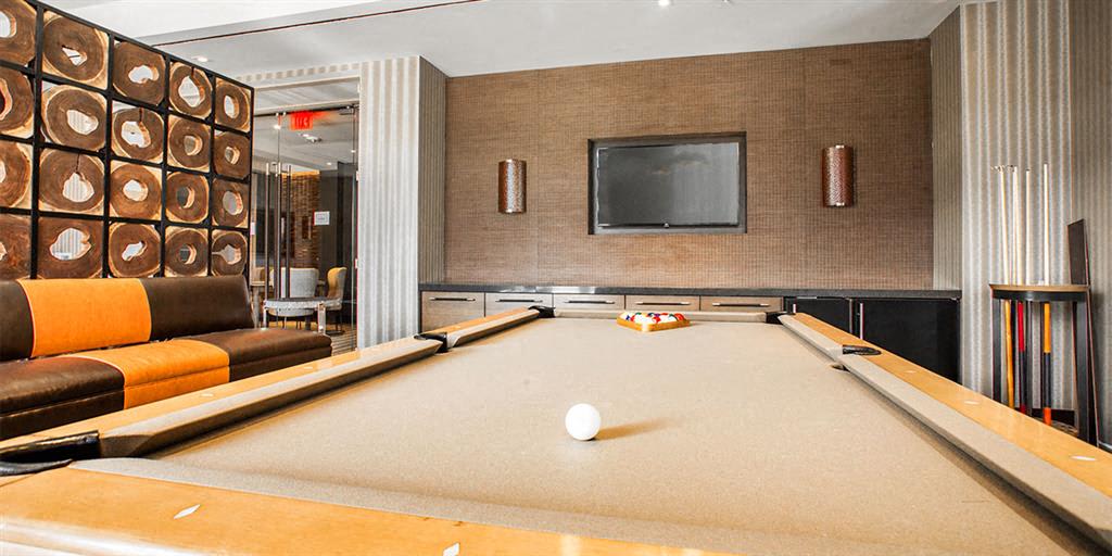 - Entertainment lounge with billiards room, card room, and big-screen TVs