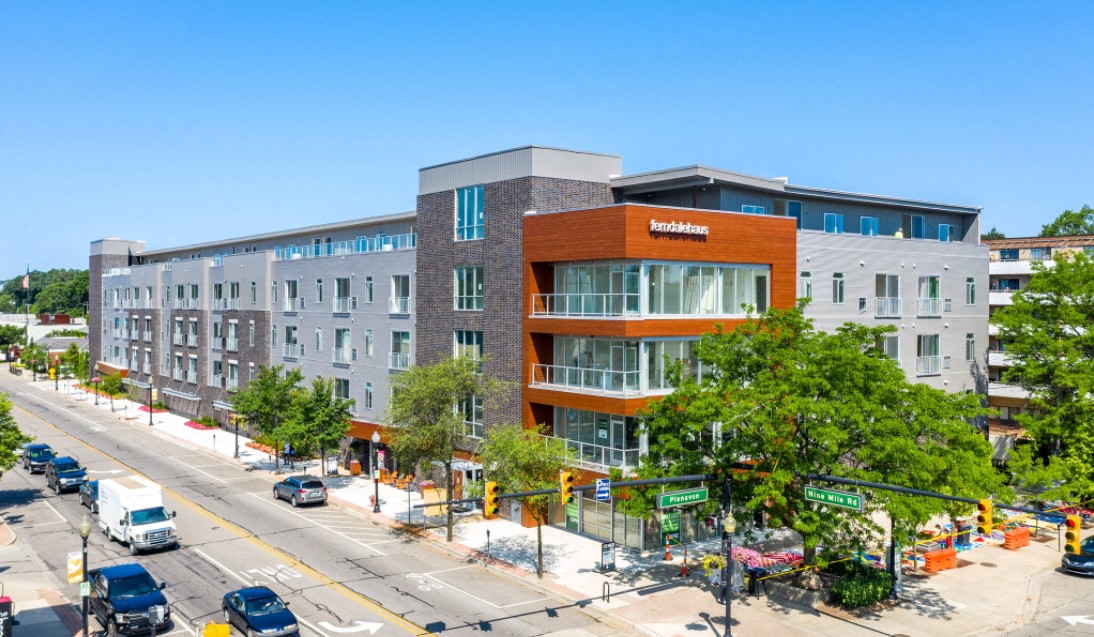 - Rooftop Sky Park with lounge space and panoramic views of Downtown Ferndale