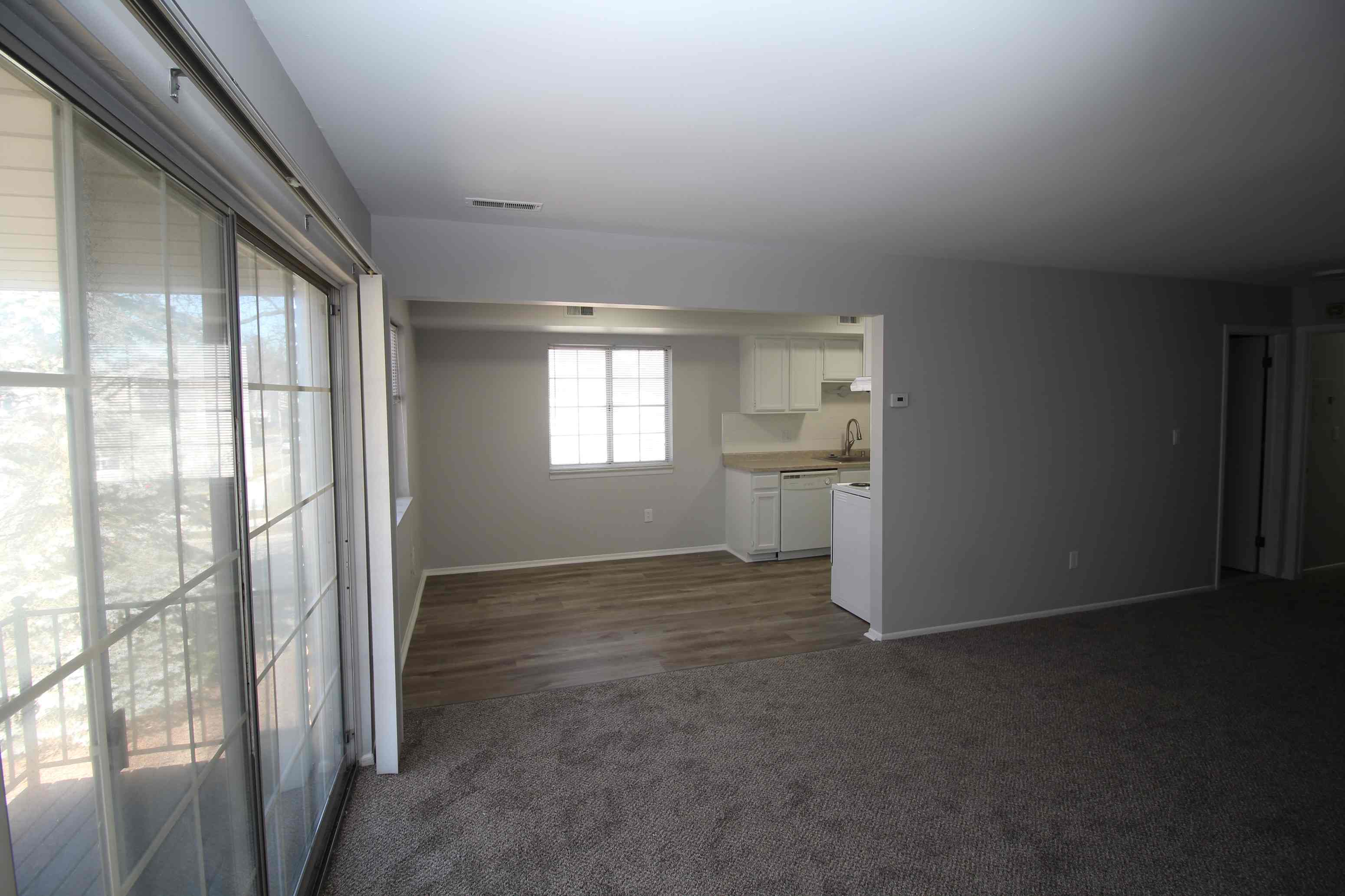 Freshly Renovated First Floor Royal Oak Apartment Eat-In Kitchen, Stone Back Splash Flooring, Appliances included - Large Dining Area - Freshly Painted Throughout in Beautiful Gray Tones - Oversized Living Area - Sliding Glass Doors Open to your own Balcony- Convenient Front Entry Closet - Large Bedroom has double Closets Space Tons of Natural Light - All New Plush Carpeting Throughout - Central AC - Apartment Includes One Assigned Carport - Coin Laundry On-Site - Water Gas Heat Included electric is residents responsibility 1.5 month security deposit and 1 month rent due at lease signing, $300 Cleaning Fee along wa Lease Setup fee of $99