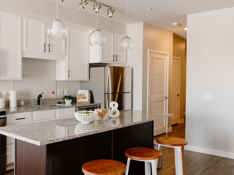 Hello Apartments has the full package – modern residences ready to welcome you and your pet, along with exclusive shared spaces designed to help you reset, all in a picturesque location with lakeside recreational spots and a rich art scene. These one- and two-bedroom apartments are in Minneapolis, minutes away from everything that makes the Twin Cities area such a desirable destination, including renowned academic institutions like the University of Minnesota and esteemed employers like General Mills. The floor plan images below are approximate and for illustration purposes only. Individual units may look slightly different than they appear here. Apartments in Golden Valley, MN, for Rent Explore our list of floor plans and find the one that works best for you. Should you need only one bedroom, our smallest layouts will be the perfect pick, as they range between 538 and 747 square feet. If your lifestyle requires more space, then our two-bedroom options are the way to go – they span from 1,056 to 1,362 square feet. No matter your choice, all our apartments in Golden Valley, MN, for rent boast full-size washers & dryers, stainless-steel appliances, electronic thermostats, air conditioners, and ceiling fans. They are also pre-wired for cable and come with vinyl floors, soft carpets, and window coverings. Plus, there’s an extra storage area inside each unit, while select one-s sport expansive walk-in and modular closets. Outside, you have plenty of possibilities to enjoy your downtime. Swim in the sparkling pool, get your daily dose of vitamin D on the sundeck, play board games at the clubhouse, and dine with neighbors at the community kitchen. Should you want to exercise or work from home, you can go to the fitness center, attend our group exercises, or type in the business center. Off-street and covered parking spots, garages, bike racks, package receiving lockers, a dog wash, and an elevator are also part of the deal. Schedule a tour today and find your apartment for rent in Golden Valley, MN.