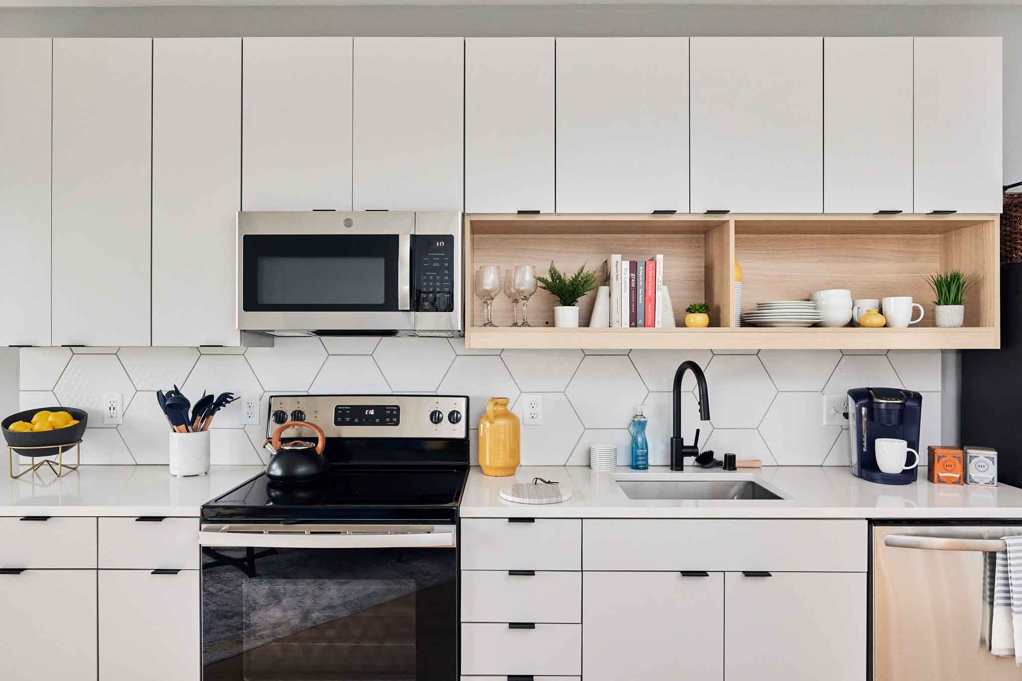 - Quartz Countertops with Tile Backsplash