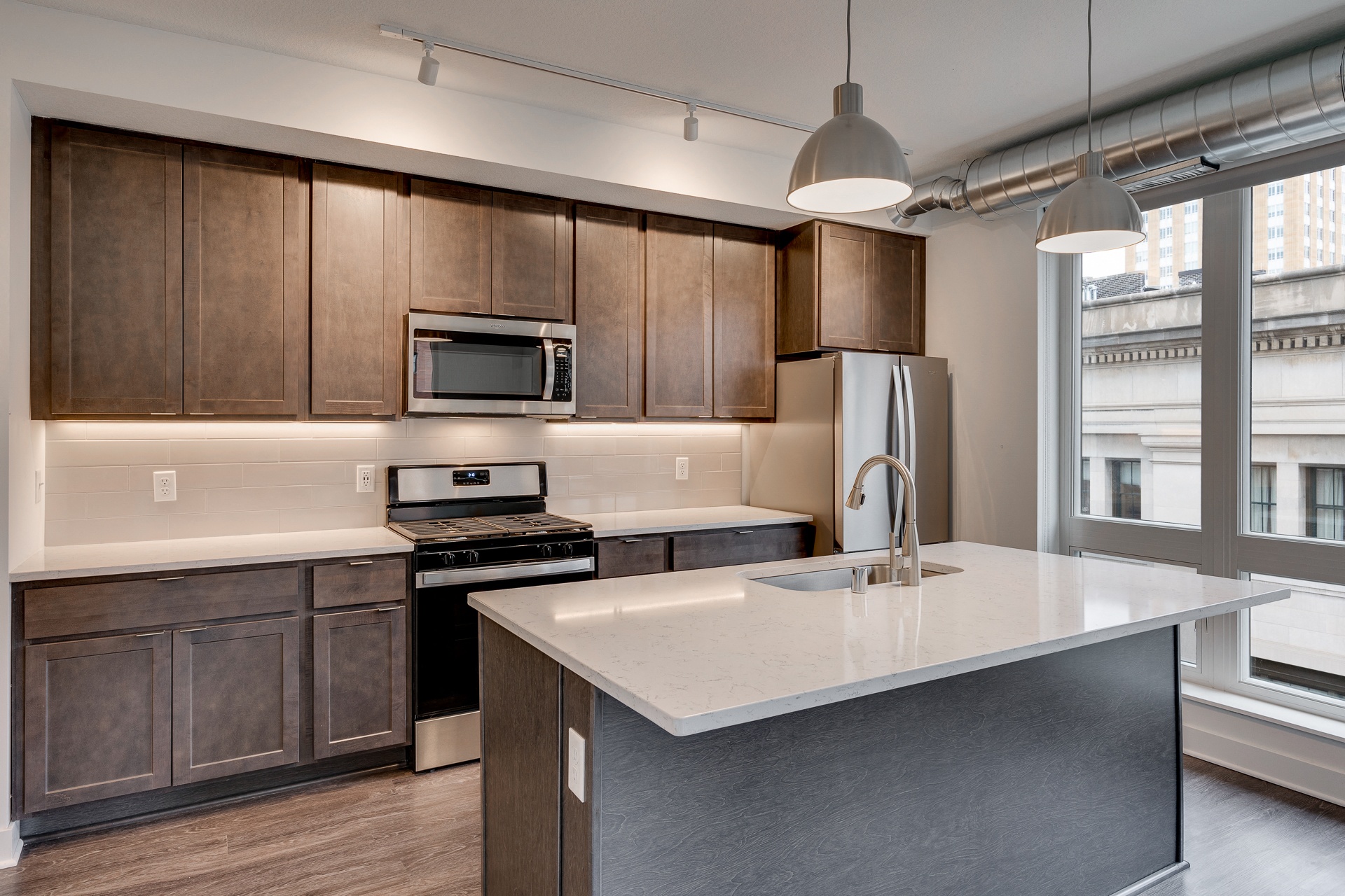 Our floor plans are thoughtfully designed to maximize space, bring in natural light, and optimize comfort. Choose from a range of modern studio, one-bedroom and two-bedroom apartment homes for rent featuring quartz counter tops, stainless steel appliances, premium bath fixtures, designer flooring, in-unit laundry and more. We believe transparency is key, especially when looking for your next home. Our one-time fees include the following for each applicant: $50 Application Fee $100 Administrative Fee $500 Deposit $250 pet fee if you plan on bringing a furry friend. Prices and special offers valid for new residents only. Pricing and availability subject to change at any time.