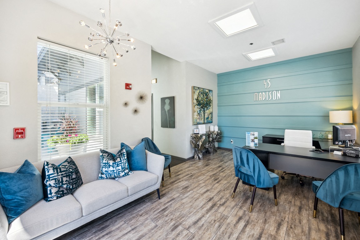 Schedule Tour Schedule a self-guided tour Select a floor plan below to learn more about our Kansas City apartments for rent. *Security deposit may range from $350 to one month’s rent. Prices shown are valid for today only. Floor plan layout, dimensions, square footage, and finishes are for reference only and may vary from what is shown. Browse Our Upscale Apartments in Midtown KC 45 Madison Apartments offers a living experience beyond just the collection of resort-worthy amenities—it also comes with a suite of masterfully designed homes and a sought-after Country Club Plaza address. This ensures our one, two, and three-bedroom apartments in Kansas City, MO, grant you a lifestyle of ease for you and your furry friend! Flexible lease terms available. Spanning between 660 and 1,008 square feet, the one-bedroom homes can accommodate those who want an easy-to-maintain place, as well as those who wish for more elbow room. The two-bedrooms extend the space up to 1,1187 square feet, whereas the sprawling three-bedrooms fit the whole entourage at 1,294 square feet. No matter what your dream layout is, all our units feature modern interior finishes and convenient fixtures. We just have to mention the gourmet kitchens with a full slate of appliances, the open living rooms with dark wood-style flooring, the spa-inspired bathrooms, and the cozy bedrooms with large closets and it’s clear you’ll love it here. Plus, a GE washer & dryer set, fiber internet, and a smart key access system are also there to complete the picture. The charm of our Kansas City, Missouri apartments doesn’t stop here. Our on-site benefits include package concierge and dry cleaning pick-up/drop-off services, along with a dog park and swimming pool. Add to this an excellent location close to I-35 and minutes from a diversified array of shopping and entertainment venues, and you have it all. It’s time to find your dream home—visit us for the grand tour of our apartments in Midtown Kansas City. Our staff is more than eager to show you around.
