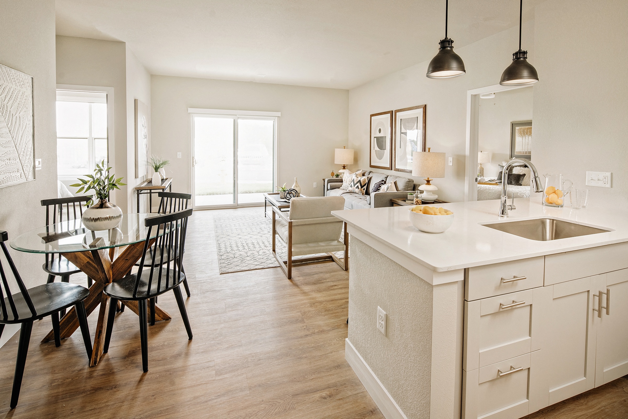 Our pet-friendly community provides everything that you need to live the life that you deserve. From the heated saltwater pool with a pool deck to the clubhouse with a coffee bar and snacks and fitness center, every shared space has been designed to evoke a strong sense of community as well as provide an escape from the stress of day-to-day life. So leave all your worries at the door because the comforts and convenience of our community spaces extend to all our one or two-bedroom apartments for rent in Fenton. Each apartment home has been equipped with modern amenities such as large walk-in closets, in-unit full-size washer and dryer, and plank flooring to create that warm feeling of an inviting home.