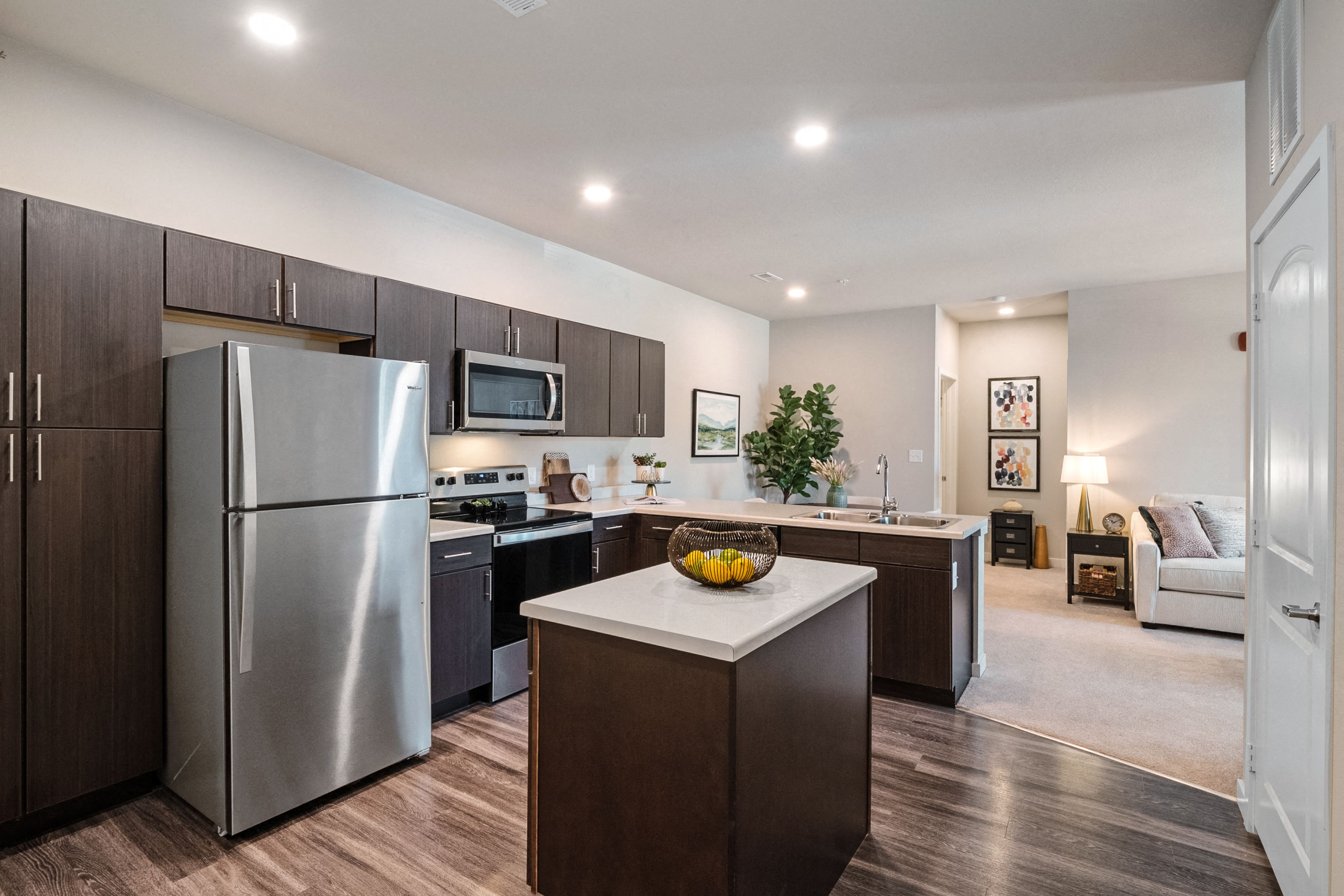 Rejoice at the sight of awe-inspiring amenities and upscale interiors inside these one, two, and three-bedroom apartments in Wentzville. Modern living coupled with first-class features and finishes creates a picture-worthy setting at Aventura at Wentzville Apartments. In addition to the dazzling amenities, we pride ourselves on the high-quality living we provide for our residents and on a coveted address, which puts you close to everything you want. Pick One of Our Wentzville Apartments for Rent The one-of-a-kind design gives way to stunning architecture, incomparable amenities, unique views, extraordinary dwellings, and memorable experiences. The one-bedroom options range between 837 and 1,075 square feet, while the two-bedroom apartments in Wentzville, MO, reach 1,071 square feet. But it’s the three-bedroom suites that steal the show with as much as 1,271 square feet. The open-concept floor plans with 9-foot ceilings, vinyl floors, expansive closets with built-in shelves, and private balconies/patios allow you to live life well, whatever you choose. Turn each dish into a culinary masterpiece inside the gourmet kitchens with stainless-steel appliances, then make your way to the spa-like bathrooms with raised bowl sinks and walk-in showers. Meanwhile, laundry days are a breeze thanks to the full-size washer/dryer sets. Find entertainment and recreation without leaving Aventura at Wentzville. Start with a dip inside the resort-style pool or grab an iced latte from the Starbucks coffee bar and retreat in the shade with your favorite book. The gated dog park is the perfect place to strengthen the bond with your furry friends, while the grilling and dining area will inspire the BBQ party planner in you. What’s more on-site maintenance and management are also included. Reach out for more information about our floor plans, be that the cozier one-bedroom apartments for rent in Wentzville, MO, or the more expansive ones.