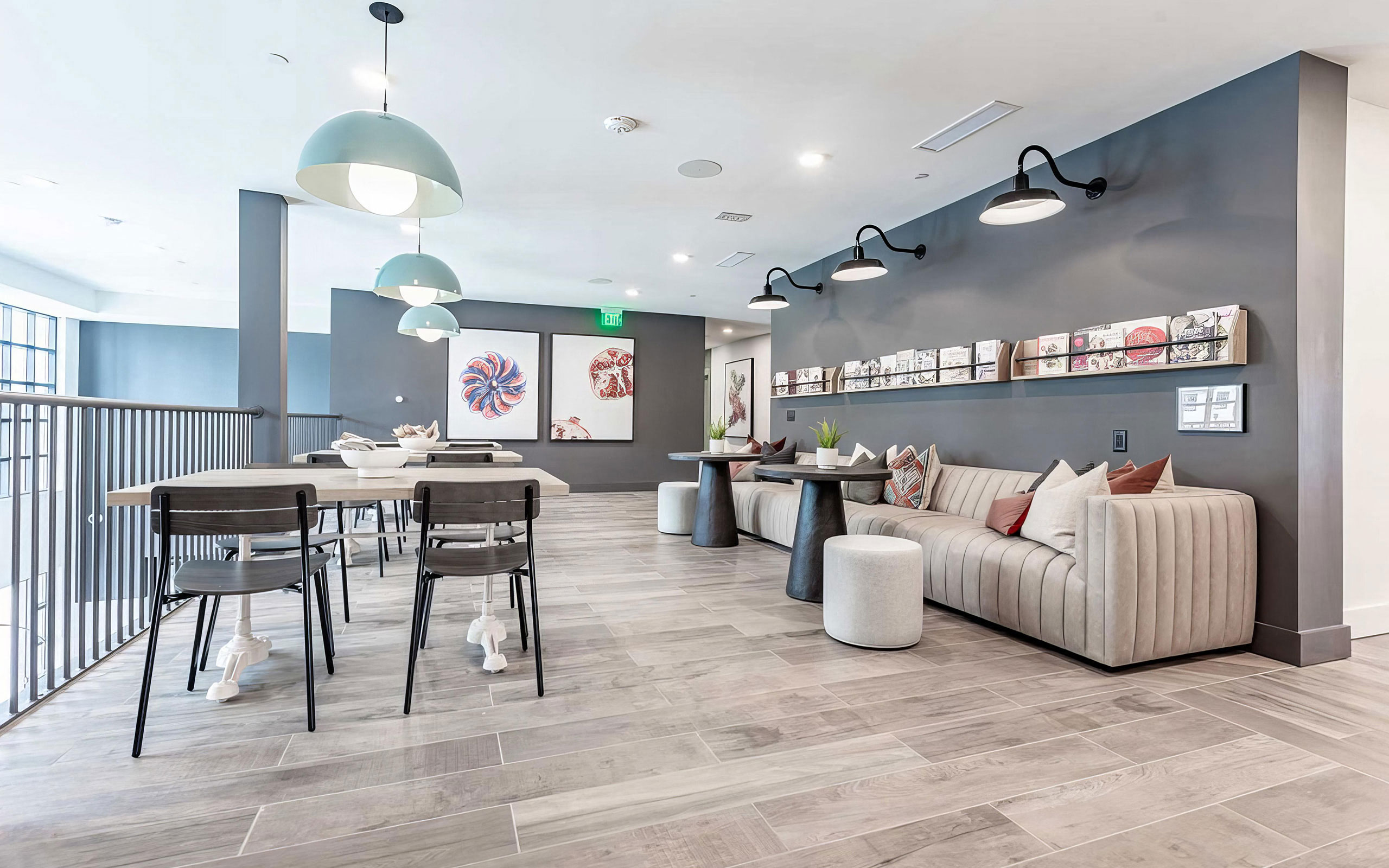 - Two-story resident clubroom with food-themed amenity offerings, including a chef’s kitchen available for residents.