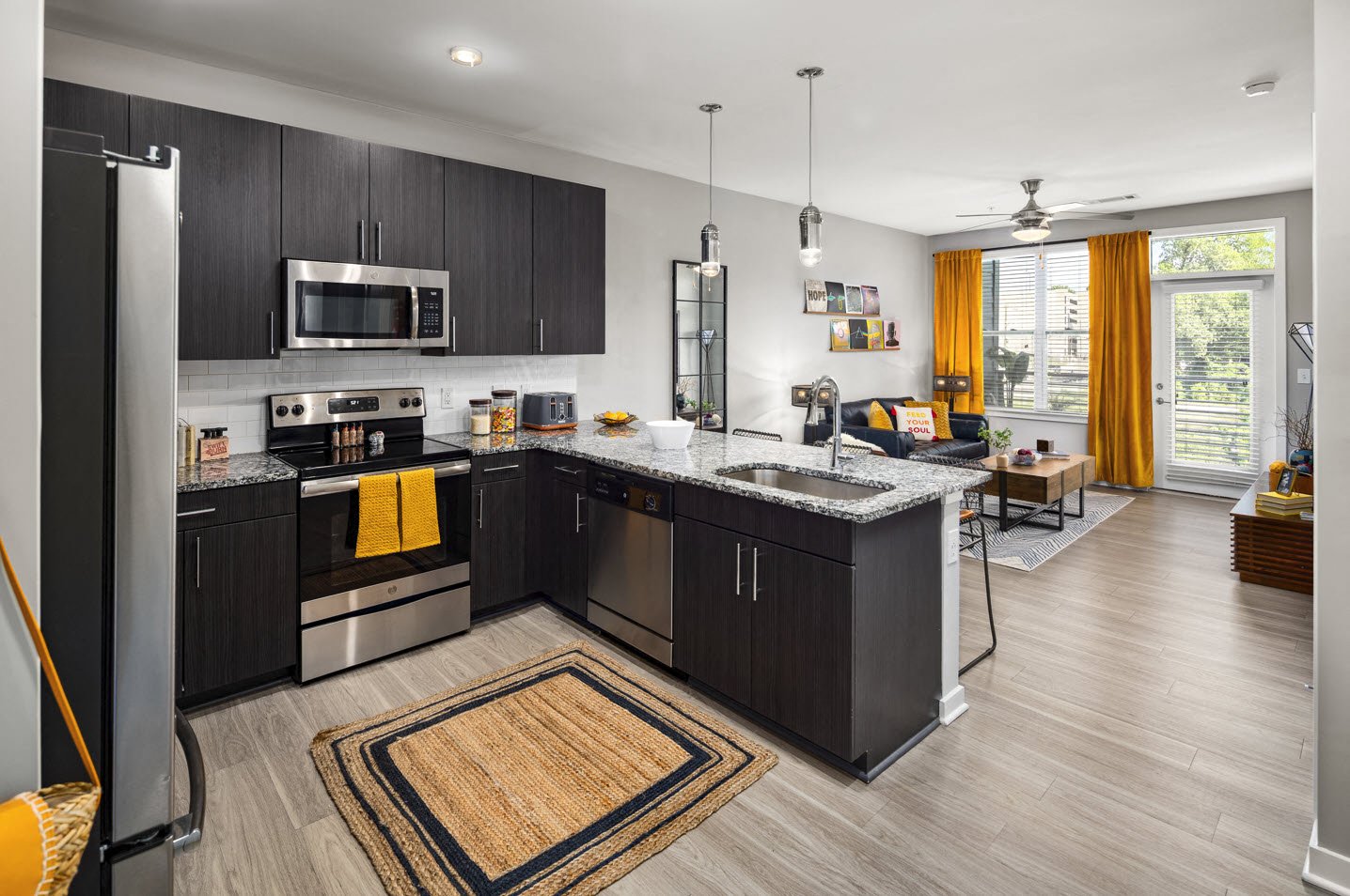 - Upgraded kitchens with granite, deluxe stainless-steel package