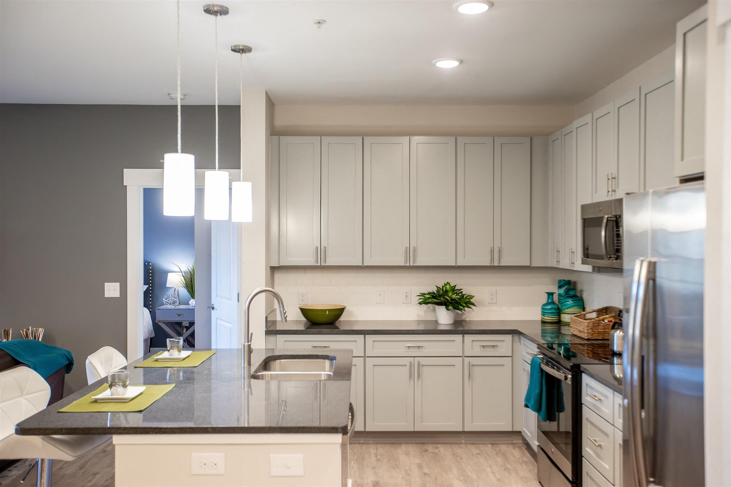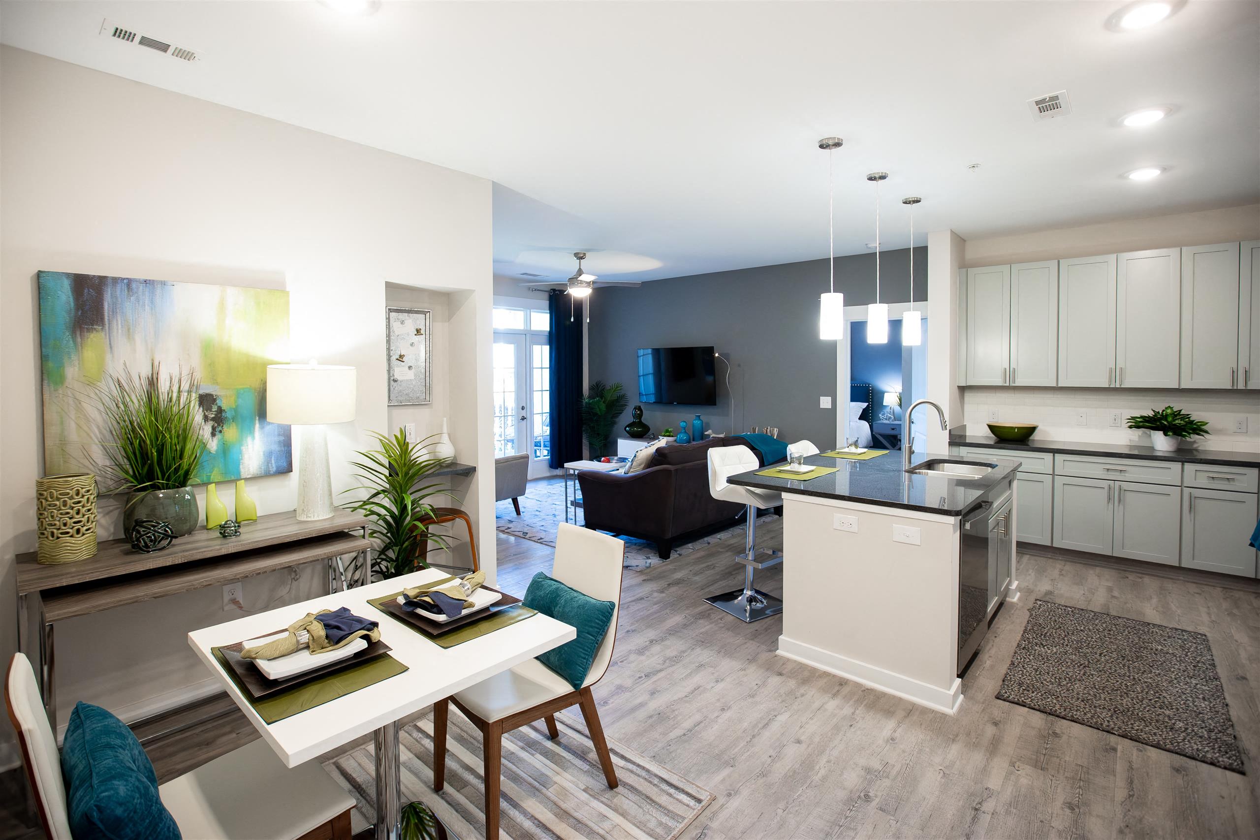Luxury is in every detail at Proximity Northlake Apartments. Part of the thriving Uptown Charlotte, our brand-new community offers a host of homes with condo-inspired interiors, upscale amenities, and plenty of living space for you to enjoy. Discover the ins and outs of our one, two, and three-bedroom apartments in Charlotte, NC, and start living on your own terms today. Embrace Upscale Living in Our Charlotte Apartments Sophistication meets functionality inside your new home. Among our 19 distinct layouts, you’ll find one-bedroom floor plans that cover an impressive 923 square feet of space. What’s more, all our two-bedroom options feature two private bathrooms and over 1,000 square feet. As for the largest three-bedroom homes, they can reach a whopping 2,199 square feet. Regardless of your choice, you’ll enjoy designer kitchens, hotel-style bathrooms, and large patios or balconies that open to green views. The soaring nine-foot ceilings give an elegant feel to your new home, while the stainless-steel appliances, stylish islands, and garden tubs are as pleasant to the eye as they are functional. You’ll be just as enticed by the leisure areas that lie outside these apartments by Northlake Mall. Savor a drink or bite at the gorgeous courtyard with weekly food truck events. Perfect your summer glow at the saltwater pool or grill some tasty burgers at the summer kitchen with gas grills. We also have a two-story clubhouse with billiards and a shuffleboard for hosting guests, as well as an outdoor terrace with a bar area for friendly gatherings. Add to this the rich calendar of social events our team organizes, and you’ll know that our community is worth claiming. Walk outside and you’re instantly connected to Uptown Charlotte, as well as popular landmarks like Northlake Mall and Perimeter Woods. Contact our team to choose one of our apartments near Davis Lake in Charlotte, NC.