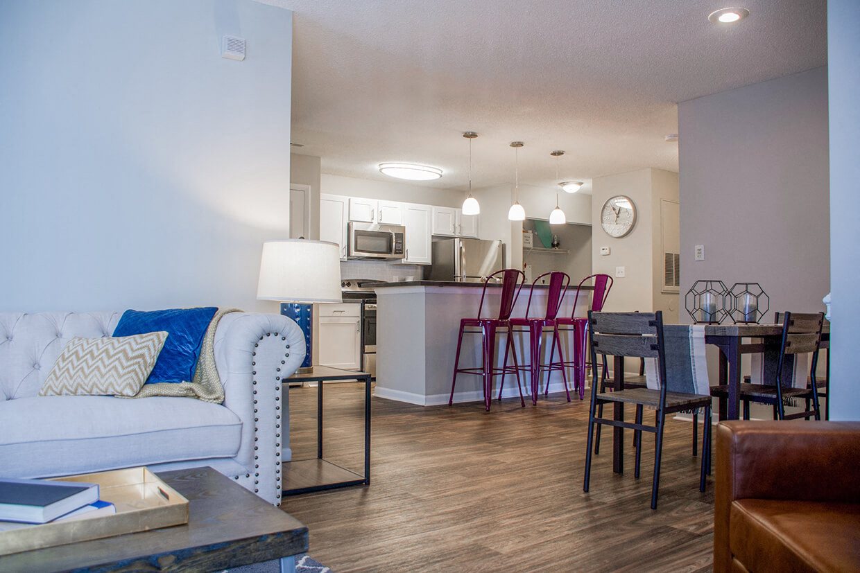 At Magnolia Terrace, interior details shape your lifestyle. Our one-, two-, or three-bedroom layouts, ranging between 561 and 1228 square feet, stand apart with well-lit living spaces and modern amenities. Browse the floor plans below, and don't hesitate to call us to secure your place in our inviting, pet-friendly community. Pick One Of Our University Center Apartments For Rent You'll love calling any of our layouts home, with each one thoughtfully designed to provide an outstanding living experience. Ranging between 561 and 1228 square feet, you'll feel the comforts of home with full-size washers and dryers (in select units), walk-in closets, and quartz countertops in each of our Charlotte apartments. The same thought and care extend to our community amenities, where residents can host friends and family or enjoy some alone time with exclusive access to a resort-style pool with private cabanas, a dog park, and a 24-hour fitness center. Discover what Magnolia Terrace offers by scheduling a tour or stopping by today. Our friendly leasing team is waiting to help you find the perfect home.