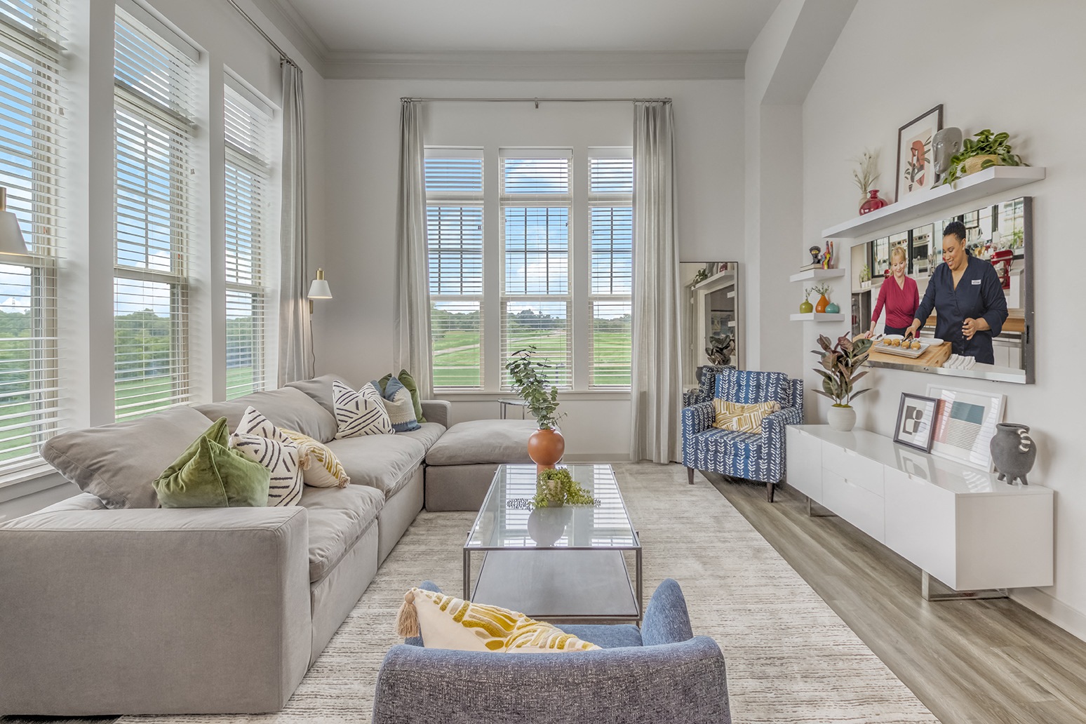 - Panoramic windows in select units