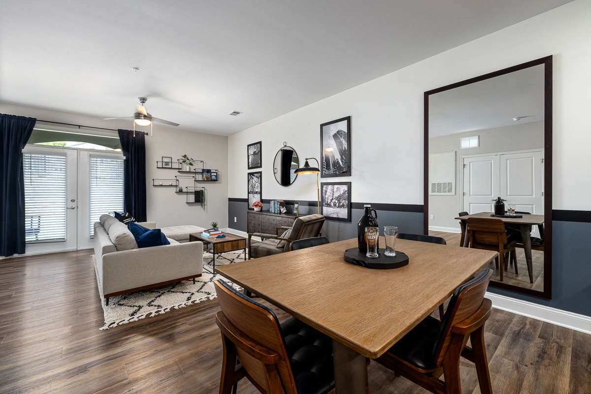 - Polished concrete floors in select apartment homes