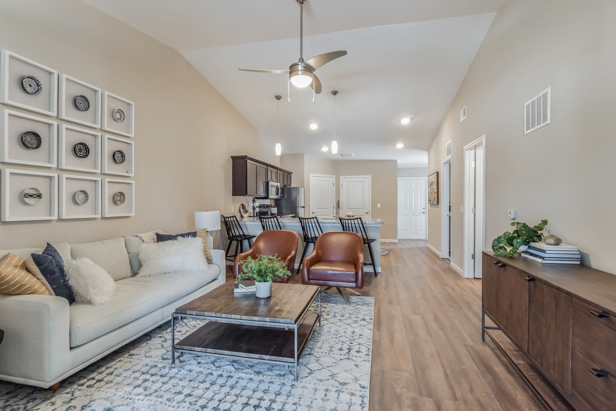 - Single-story, open floor plan design